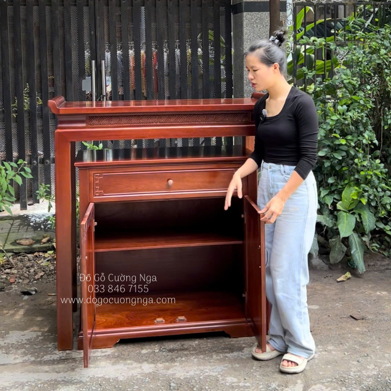 Video chi tiết bàn thờ gia tiên gỗ xoan đào hiện đại