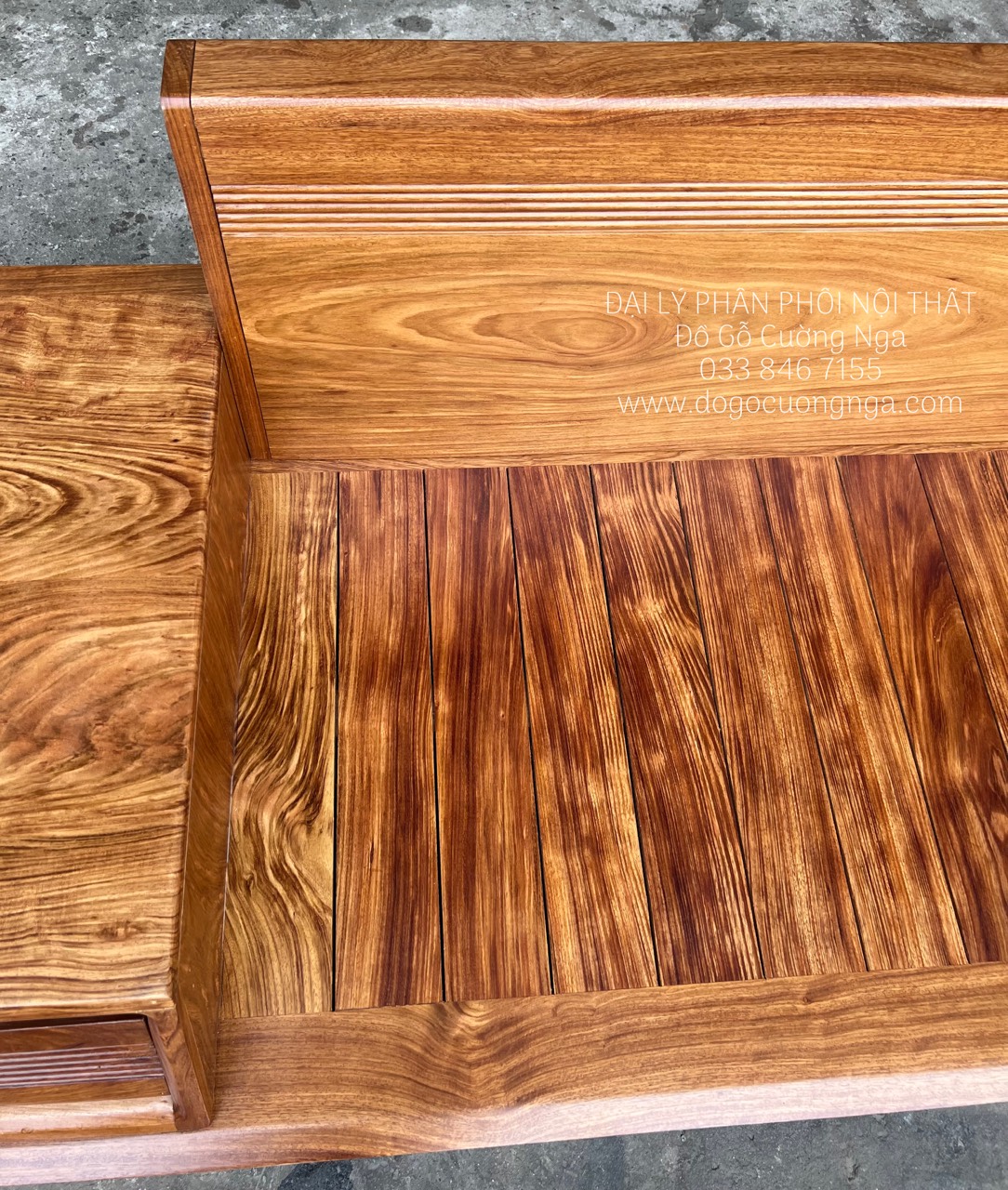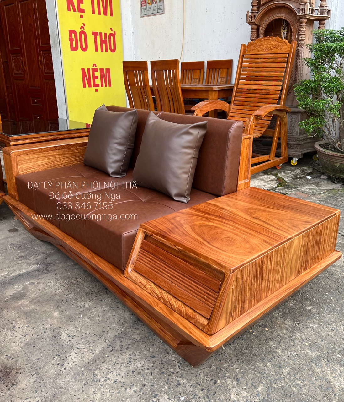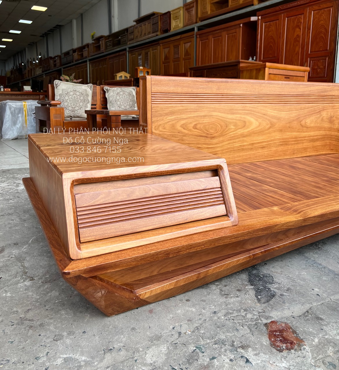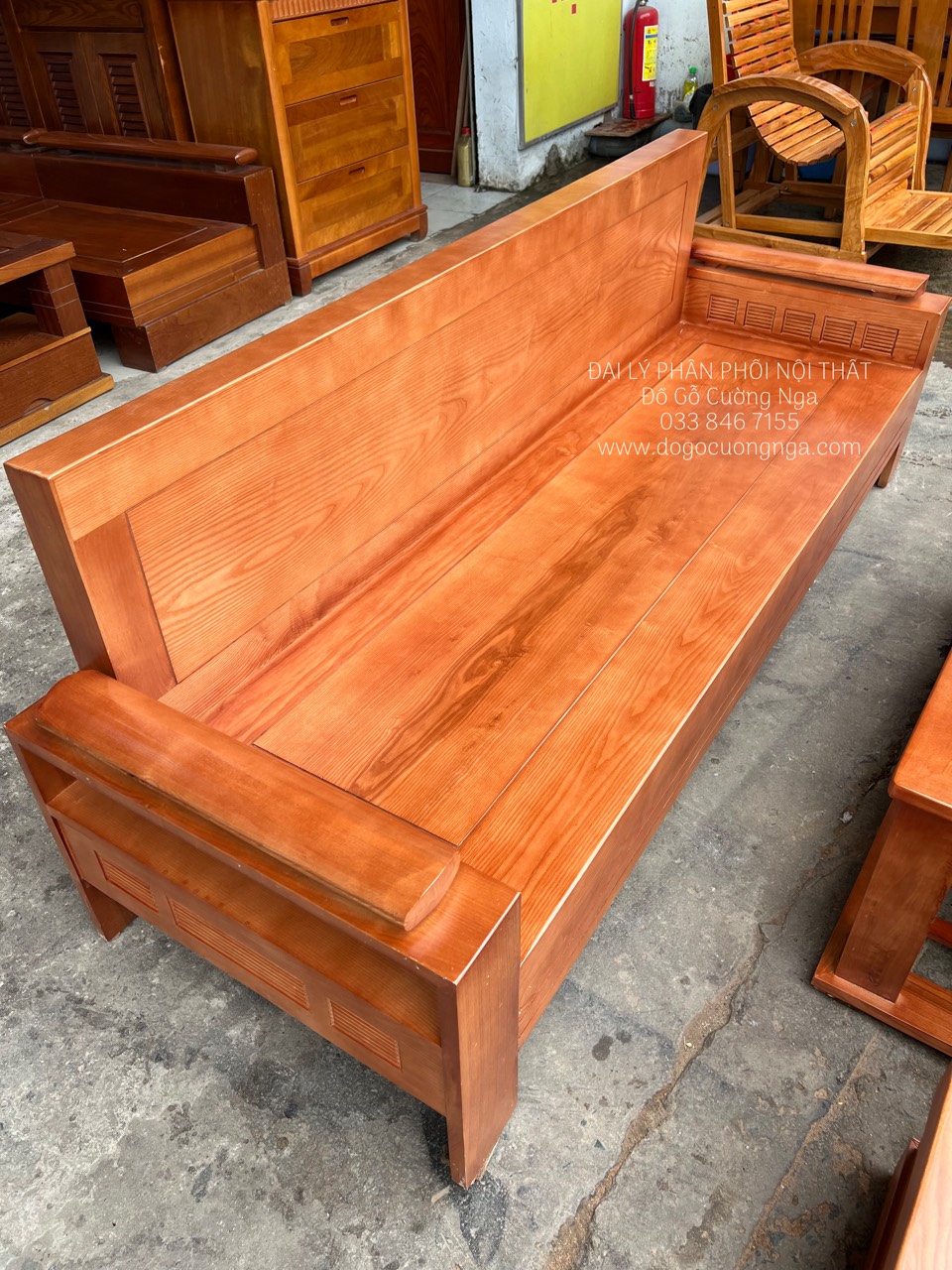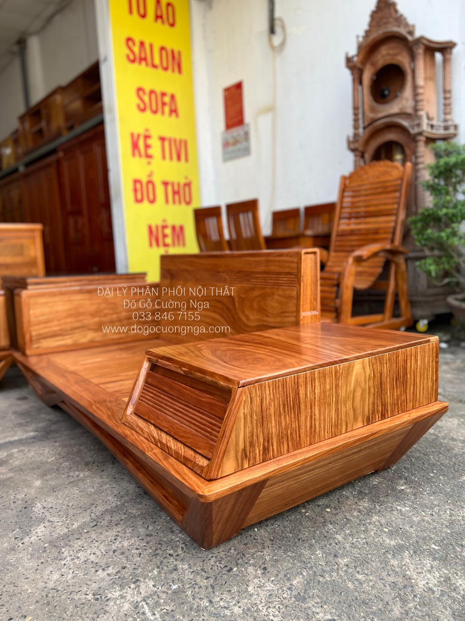 Bộ Ghế Sofa Gỗ Hương Vàng Cao Cấp - Mẫu 2 Văng Thuyền Kèm Nệm