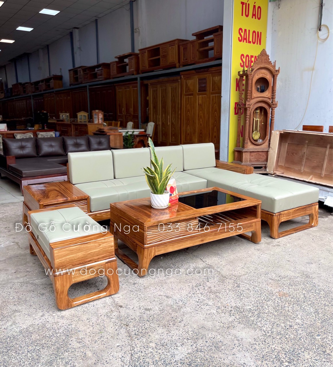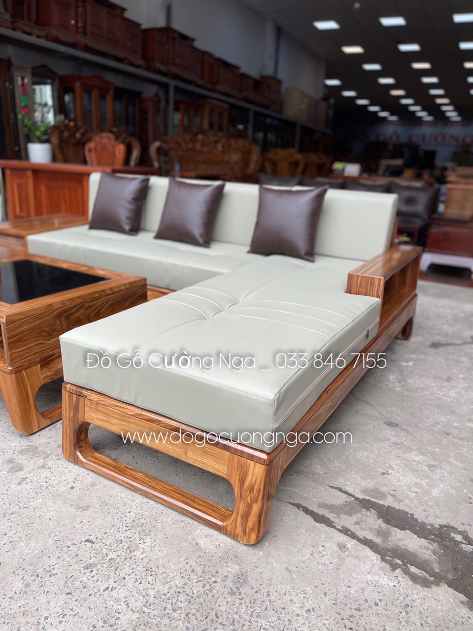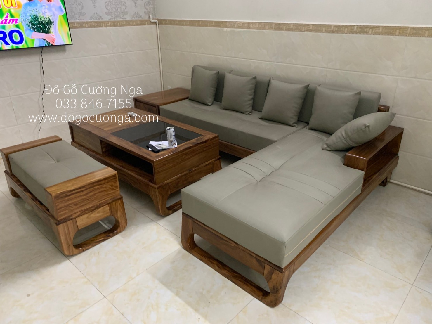Đồ Gỗ Cường Nga xin giới thiệu đến bạn mẫu bàn ghế sofa gỗ hương xám được thiết kế theo phong cách hiện đại với kiểu dáng chữ L tiện dụng. Không chỉ đẹp mắt, chất lượng tốt mà sản phẩm còn có giá cả vô cùng phải chăng phù hợp với các gia đình Việt. Hãy cùng đánh giá qua vài ưu điểm nổi bật của mẫu sofa gỗ này bạn nhé.