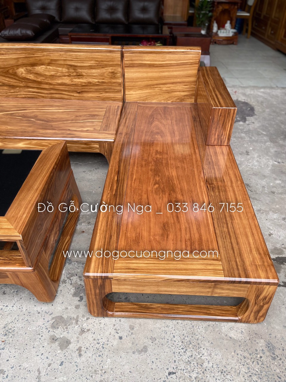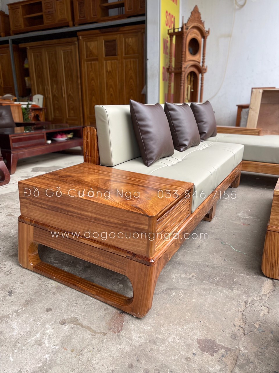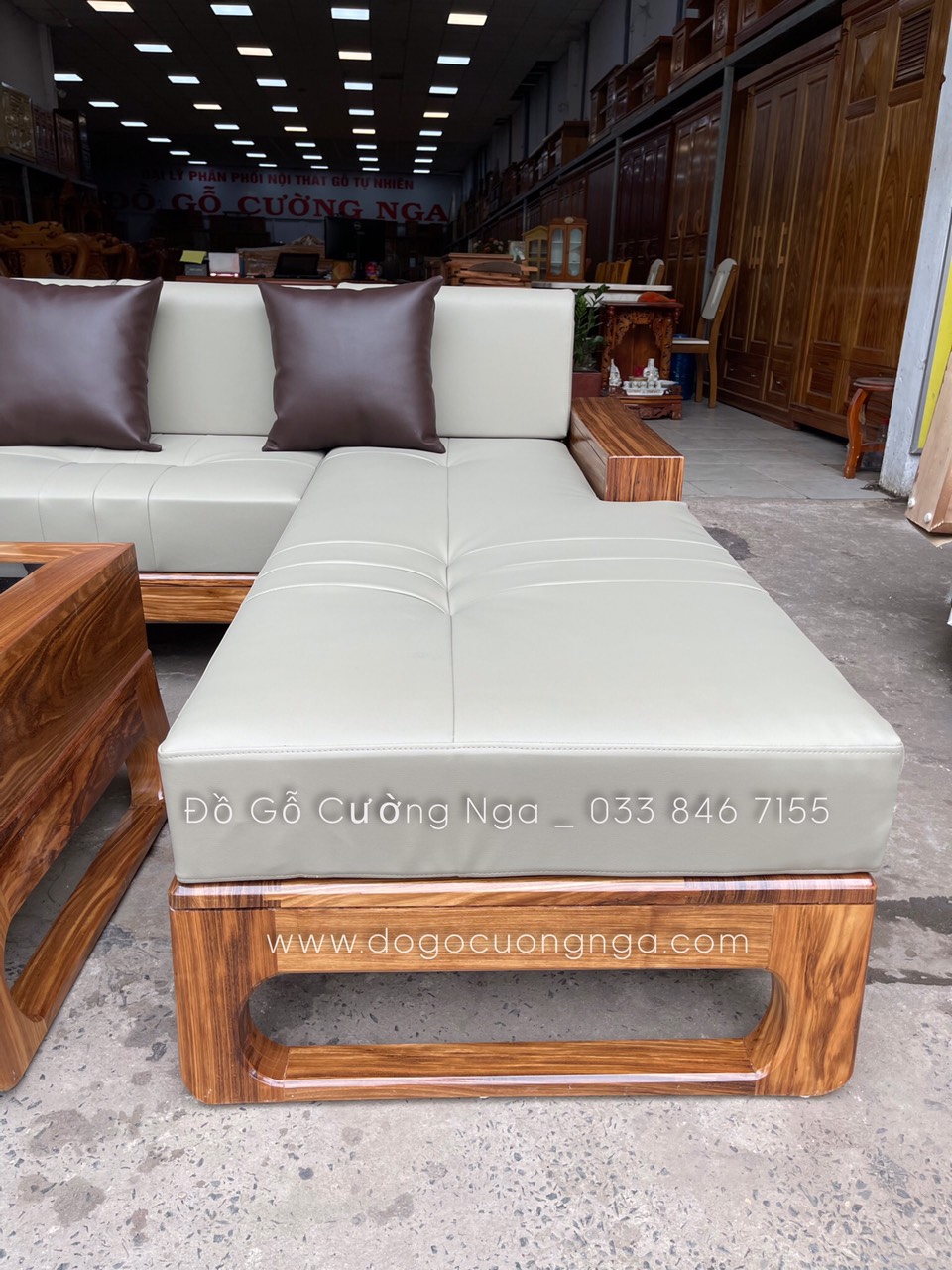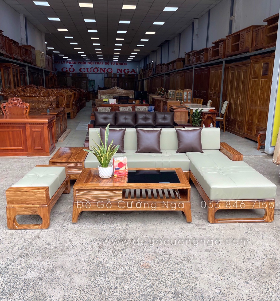 Đồ Gỗ Cường Nga xin giới thiệu đến bạn mẫu bàn ghế sofa gỗ hương xám được thiết kế theo phong cách hiện đại với kiểu dáng chữ L tiện dụng. Không chỉ đẹp mắt, chất lượng tốt mà sản phẩm còn có giá cả vô cùng phải chăng phù hợp với các gia đình Việt. Hãy cùng đánh giá qua vài ưu điểm nổi bật của mẫu sofa gỗ này bạn nhé.