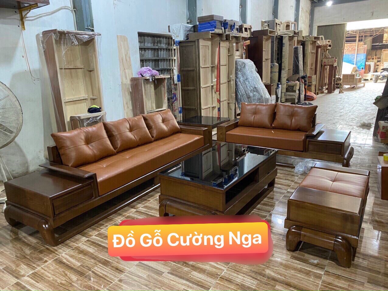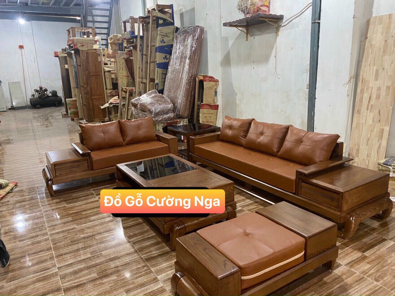 Bàn Ghế Sofa 2 Văng Gỗ Sồi Nga Mẫu Đùi Gà Cao Cấp