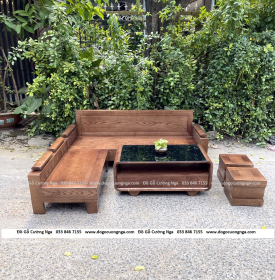 Bộ Sofa Gỗ Sồi Nga Góc L 2mx1m8 - Màu Óc Chó Tựa Liền
