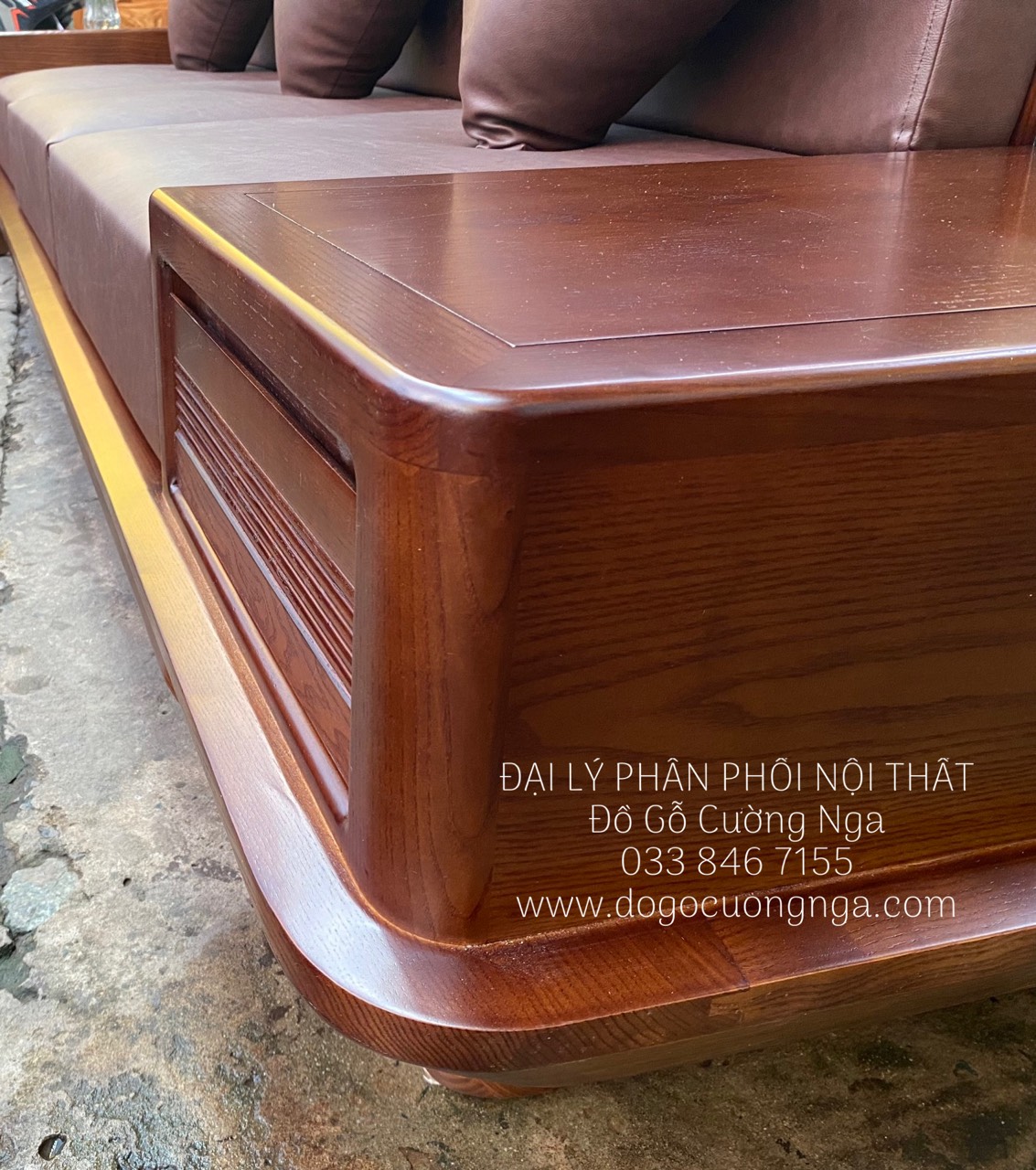 Chi tiết ghế sofa gỗ sồi nga thuyền nệm óc chó