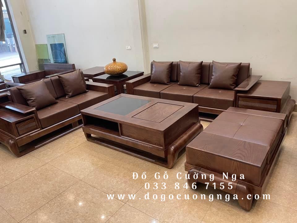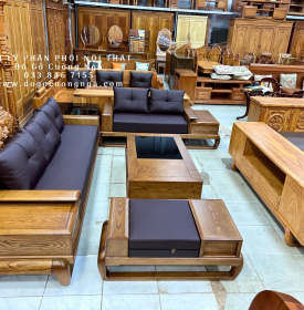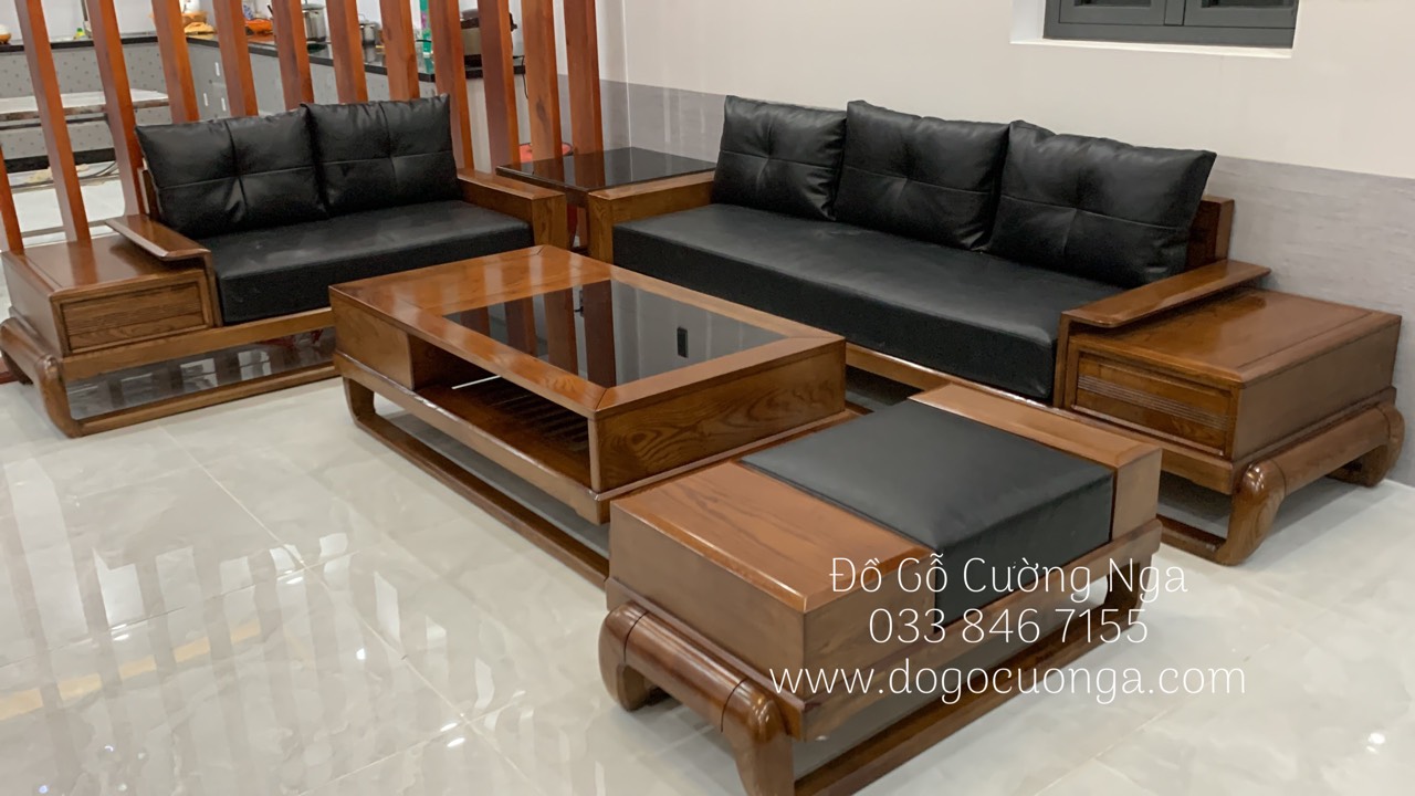 Bộ Ghế Sofa 2 Văng Gỗ Sồi Nga Lau Màu Hương