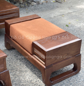 Chất liệu : Gỗ Sồi Nga kèm nệm 15cm ( vải bố )