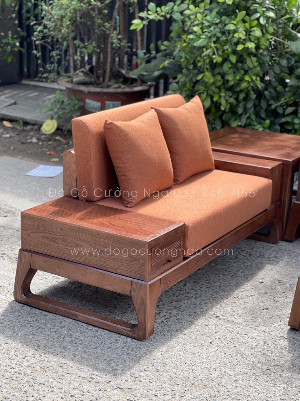 Chi tiết sản phẩm Sofa 2 văng choãi gỗ Sồi Nga đẹp TP HCM