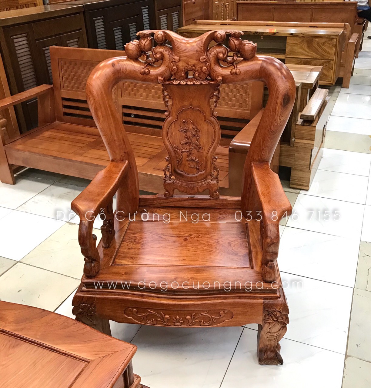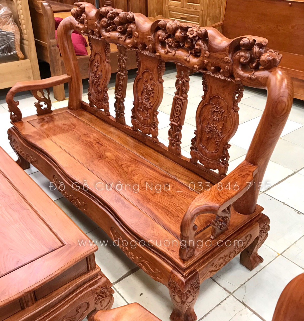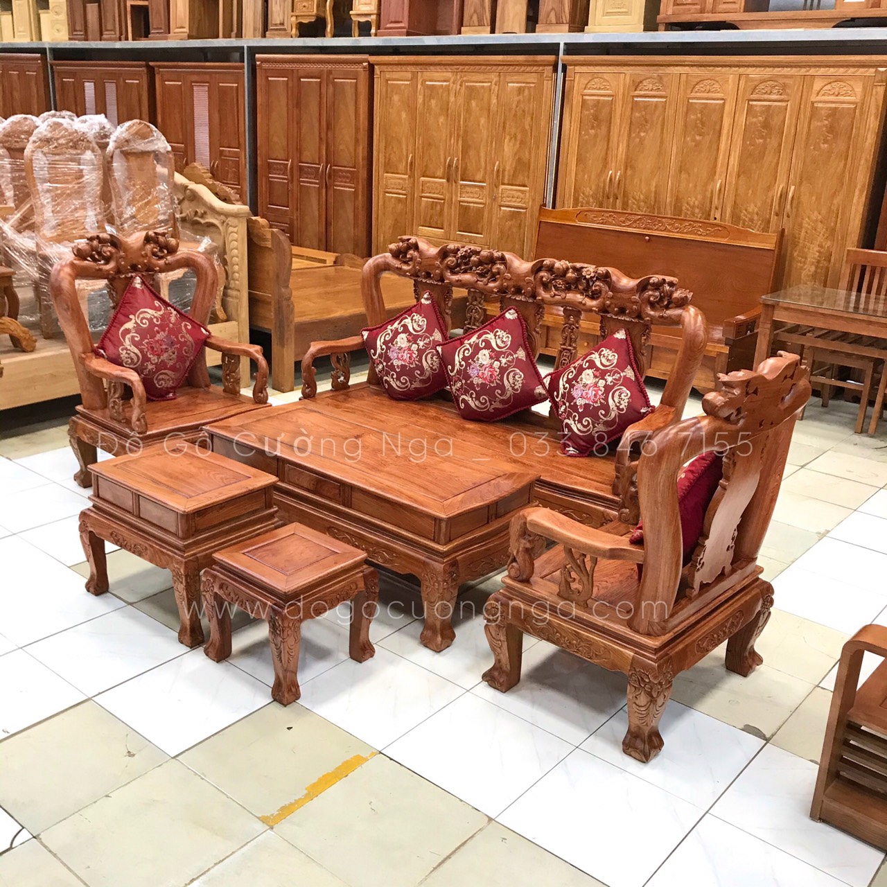 Video thực tế mẫu ghế salon gỗ hương đá tay 10