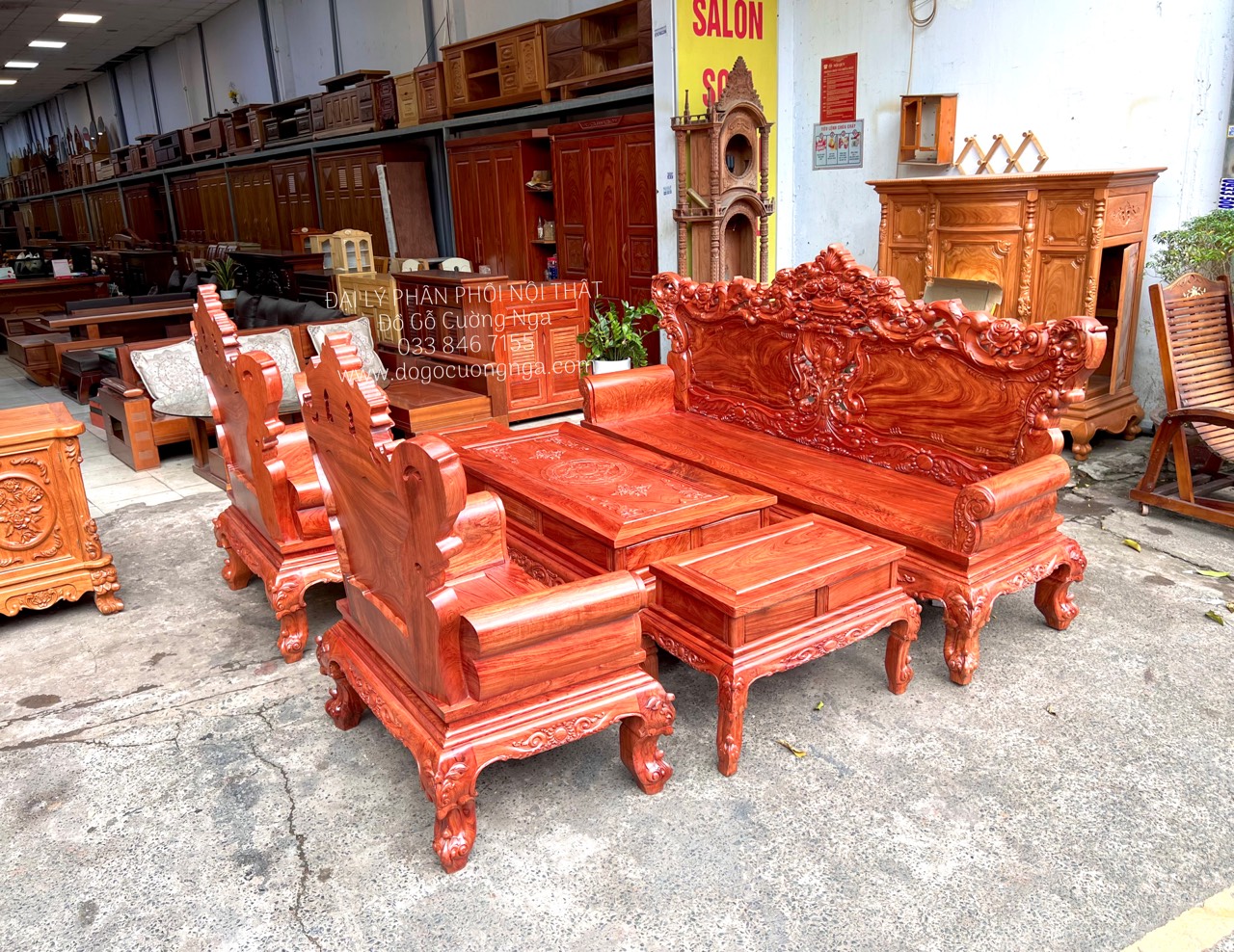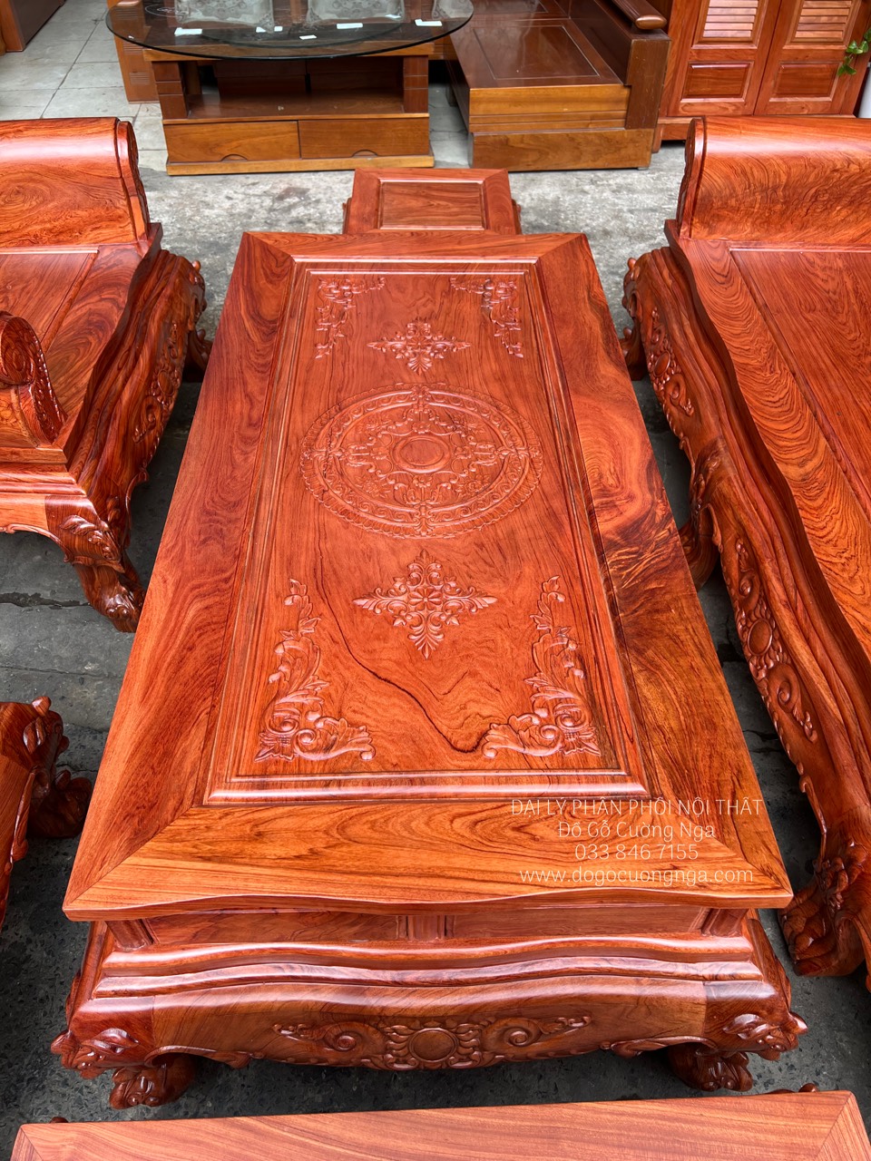 Mẫu bàn ghế salon gỗ Hương Đá cao cấp này hiện đang được bán tại hệ thống Đồ Gỗ Cường Nga với giá rẻ cùng chất lượng tuyệt vời. Chúng tôi rất mong quý khách sẽ có dịp đến chiêm ngưỡng trực tiếp sản phẩm để cảm nhận hết vẻ đẹp và sự đẳng cấp của bộ salon gỗ Hương Đá này.