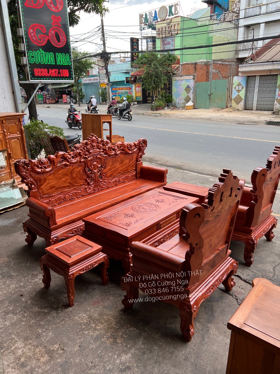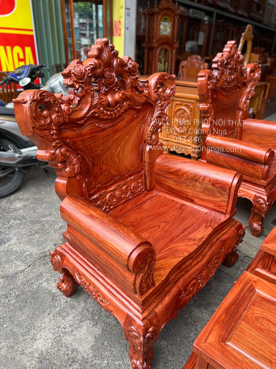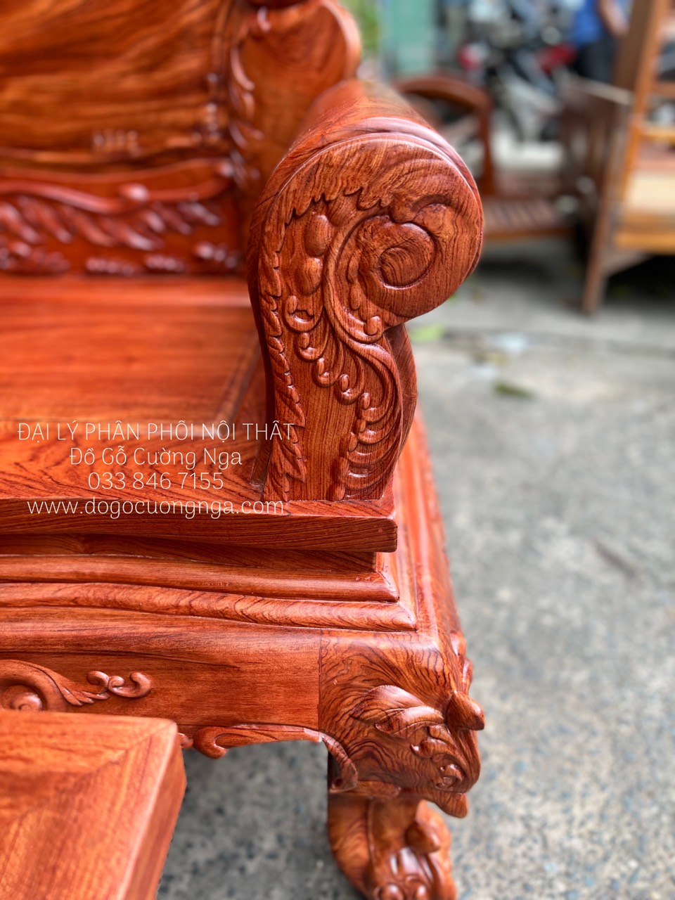 Video thực tế mẫu ghế salon gỗ hương đá chạm hoàng gia tay cao cấp