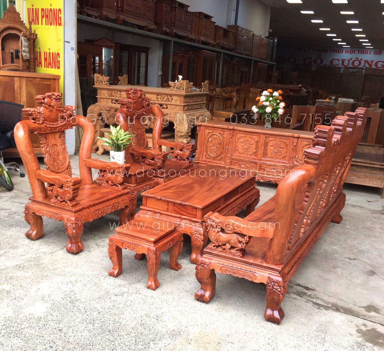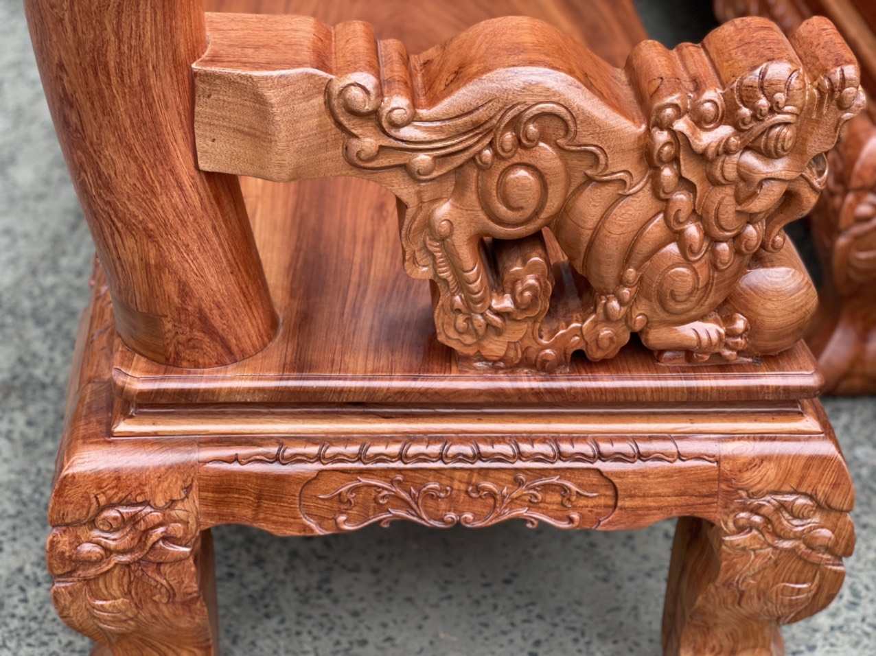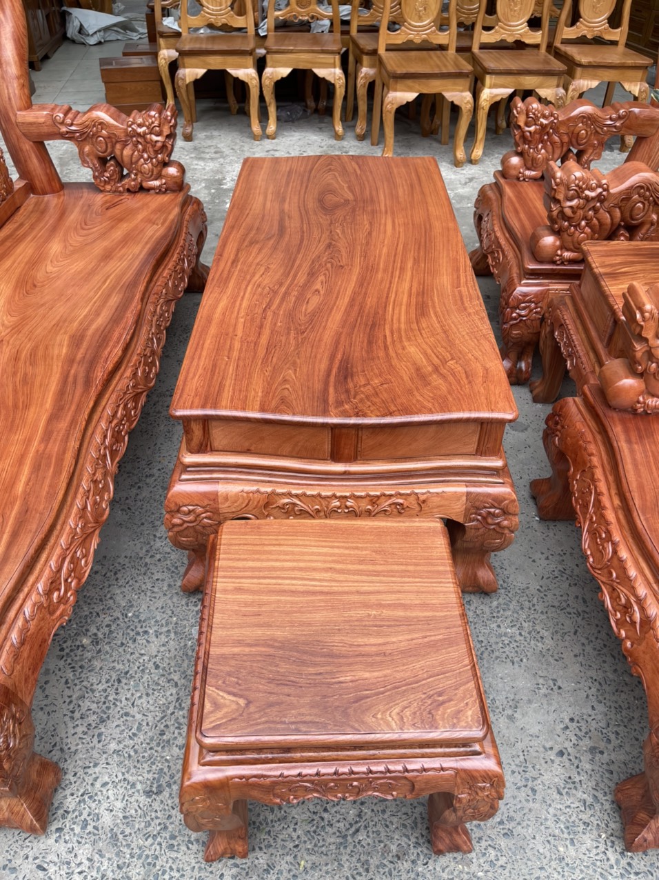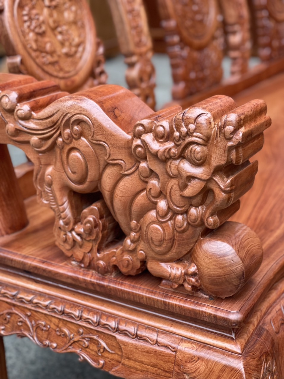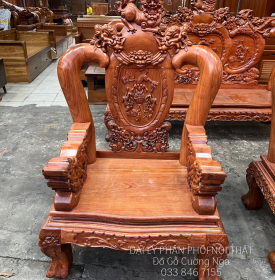 Bộ salon gỗ hương đá tay 12 chạm nghê hạt cao cấp