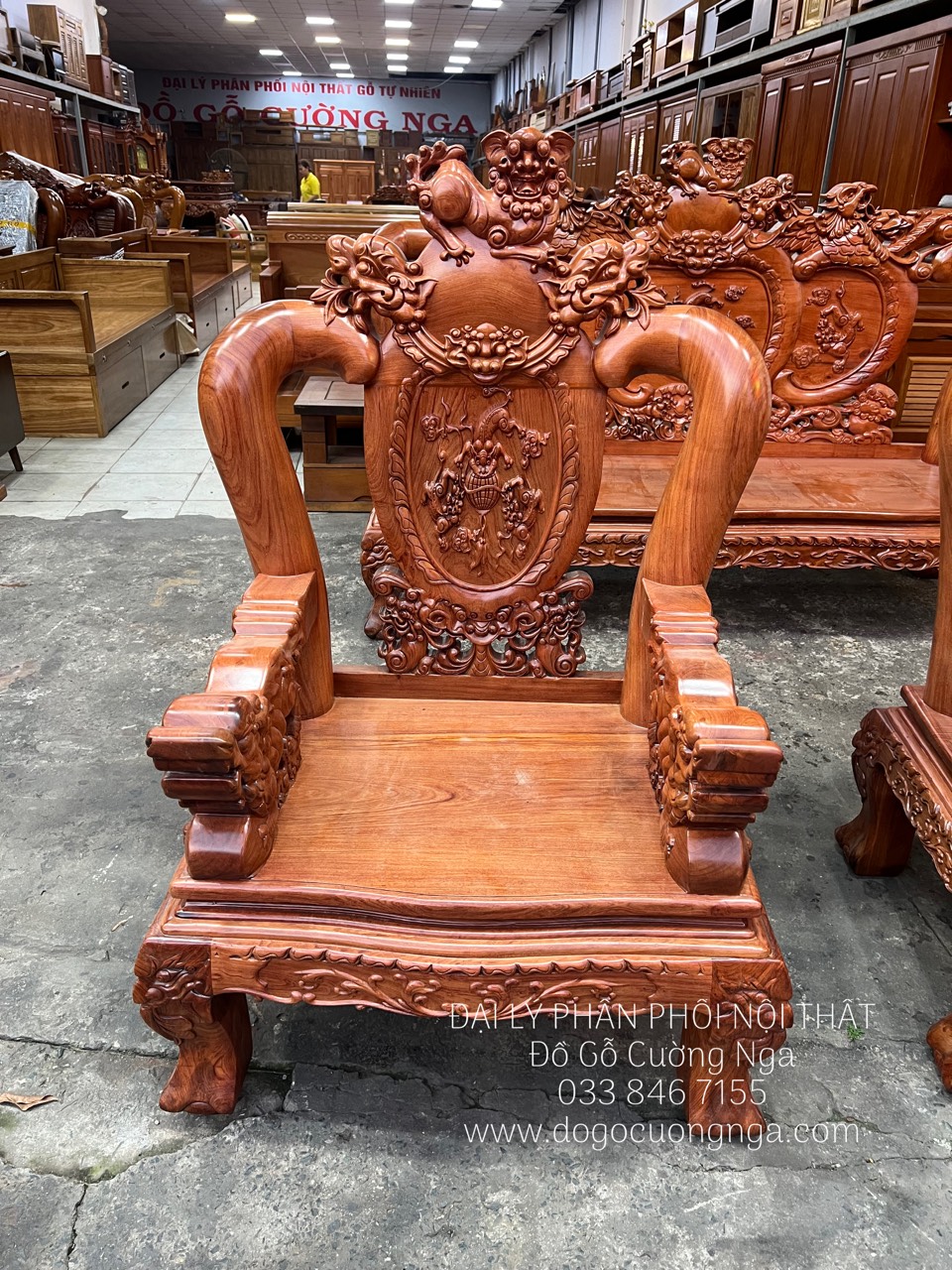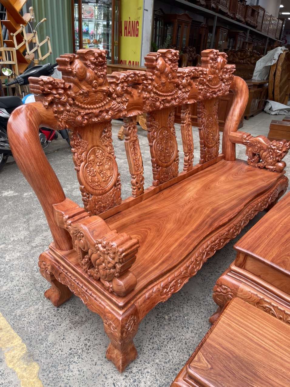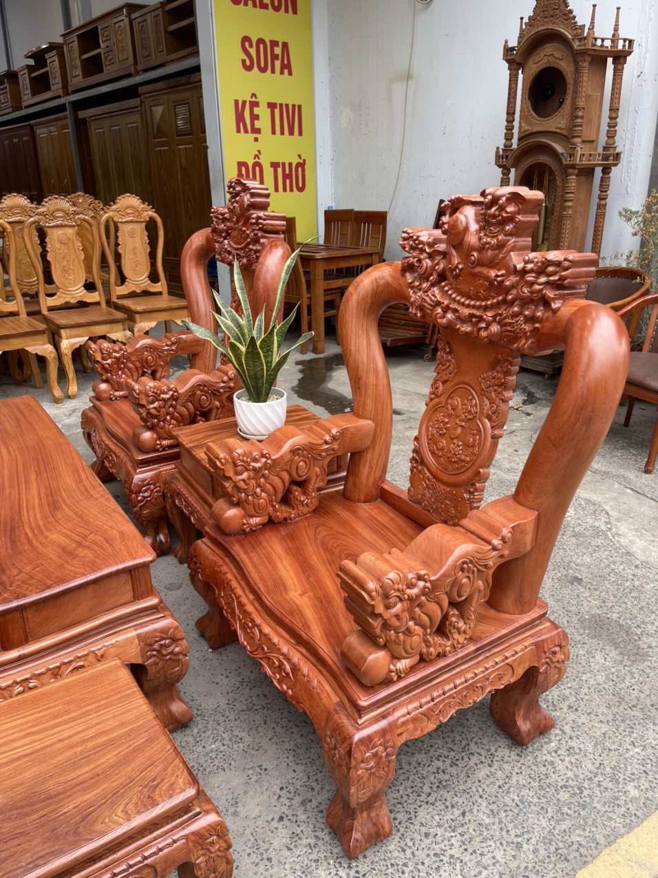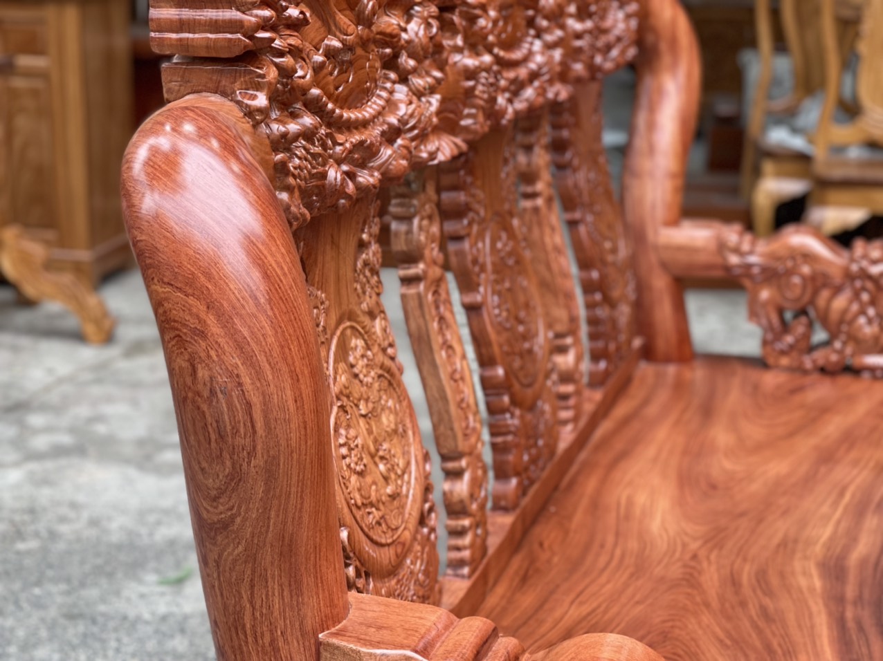 Bộ salon gỗ hương đá tay 12 chạm nghê hạt cao cấp