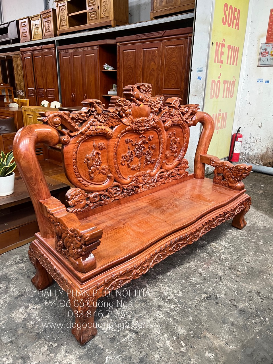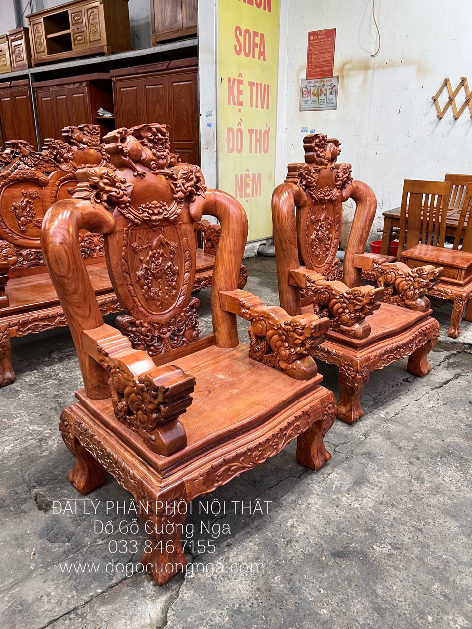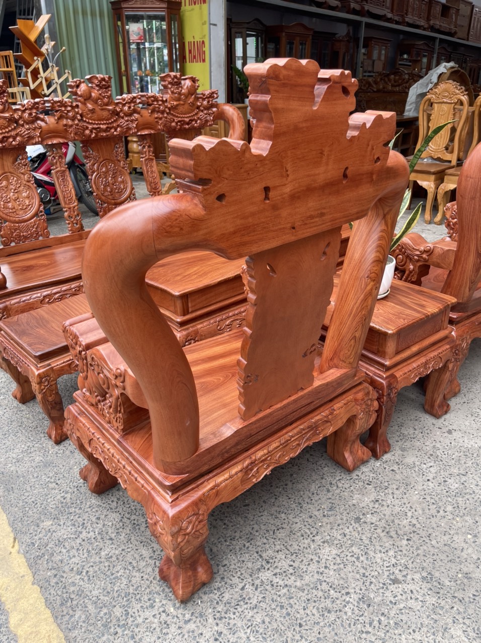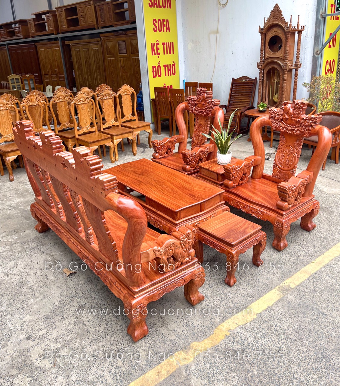 Bộ salon gỗ hương đá tay 12 chạm nghê hạt cao cấp