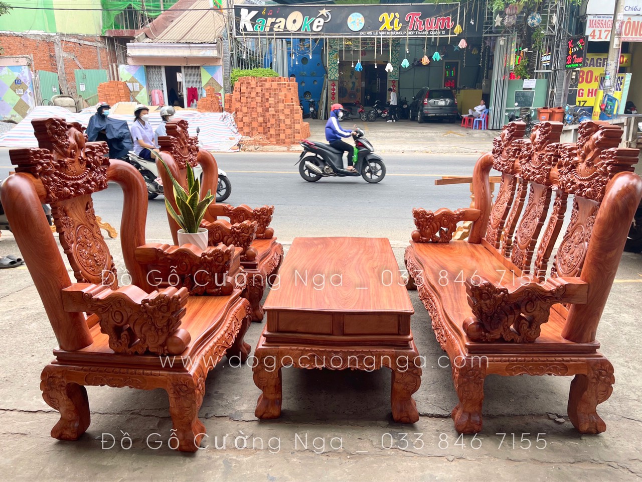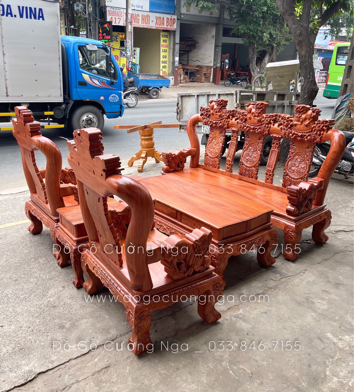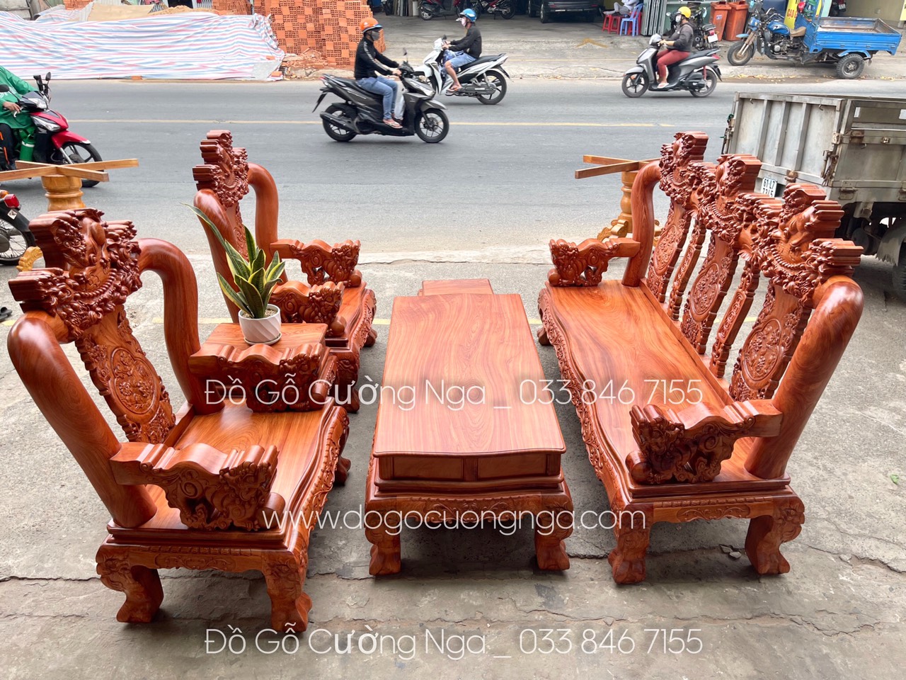 Bộ bàn ghế gỗ Hương Đá cao cấp tại Đồ Gỗ Cường Nga