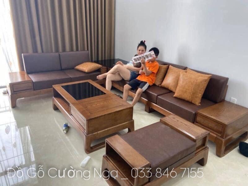 Bộ Sofa 2 Văng Gỗ Sồi Nga Lau Màu Óc Chó Hiện Đại