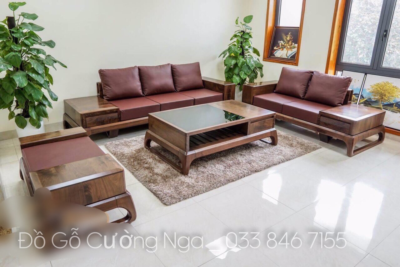 Bộ Sofa Gỗ Sồi Nga Lau Màu Óc Chó Hiện Đại