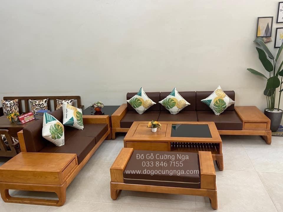 Bộ Sofa 2 Văng Gỗ Sồi Nga Lau Màu Gỗ Gõ Đỏ