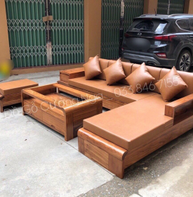 Bộ Sofa Gỗ Gõ Đỏ 2m7x1m9 ( Tặng Nệm Da Hàn Quốc )