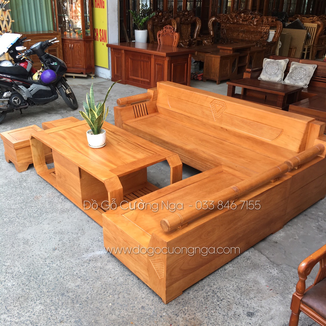 Chi Tiết Kích Thước Bộ Sofa Gỗ Gõ Đỏ Góc L