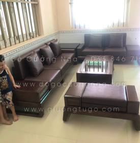 Bộ Sofa Gỗ Sồi Nga Óc Chó Cao Cấp ( Tặng Nệm)