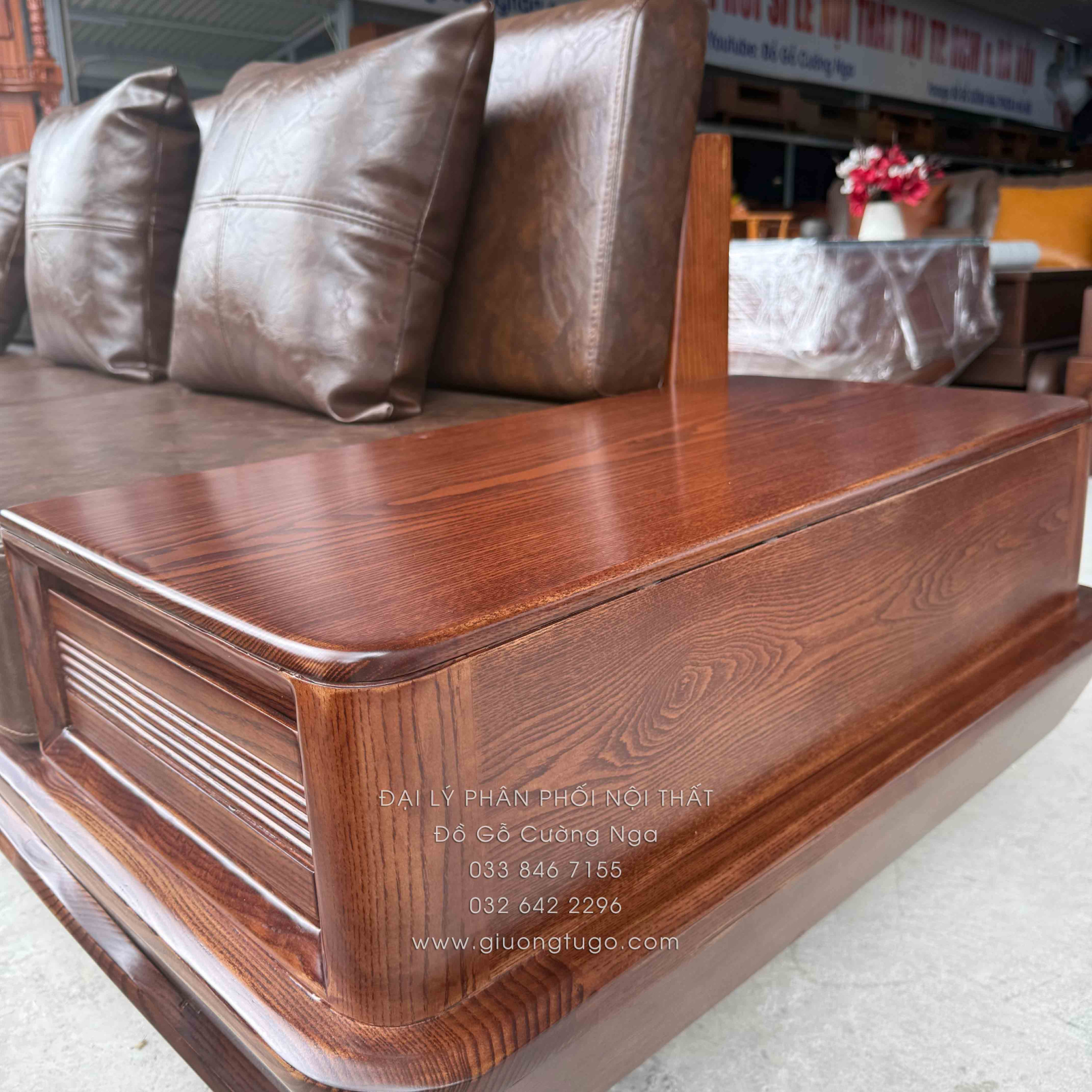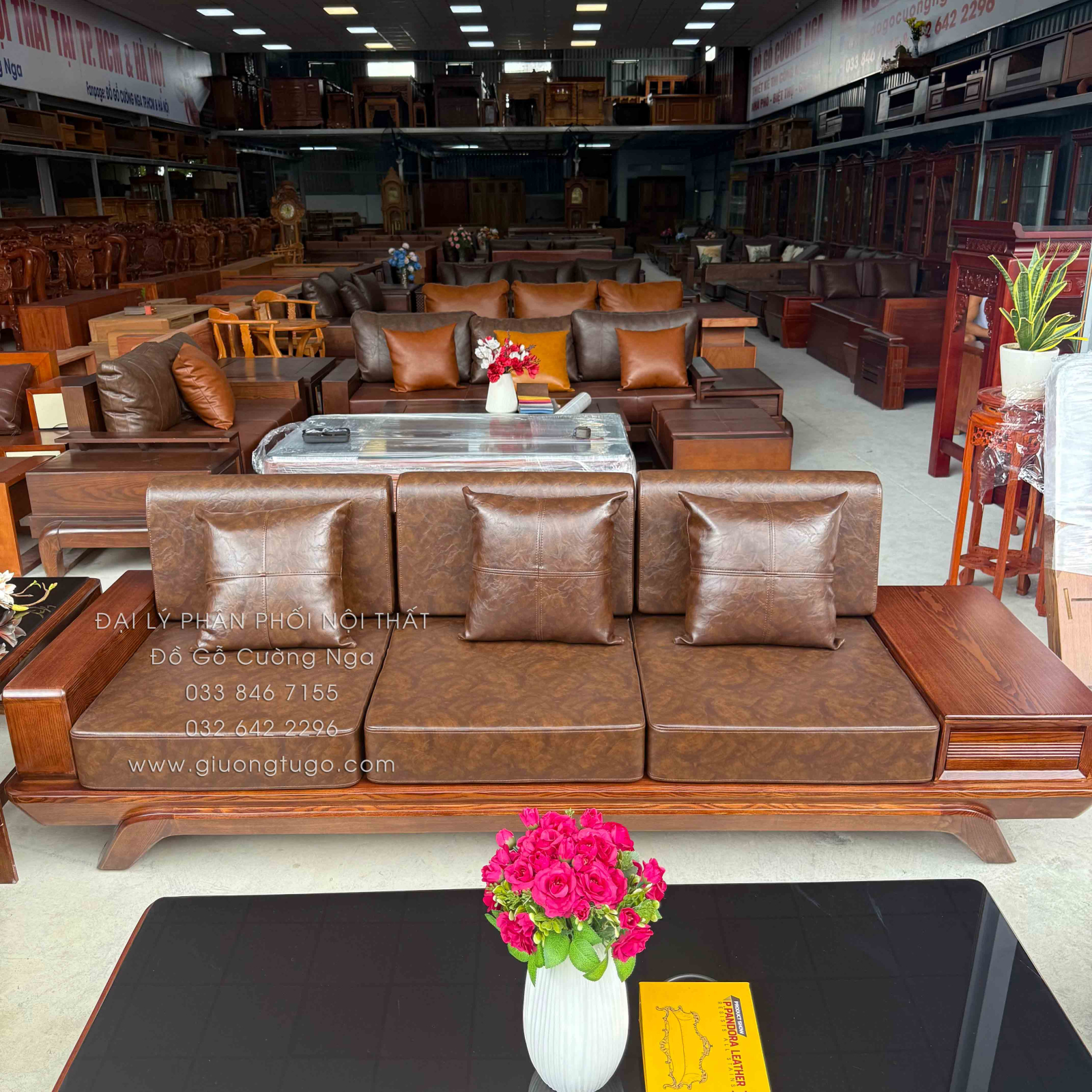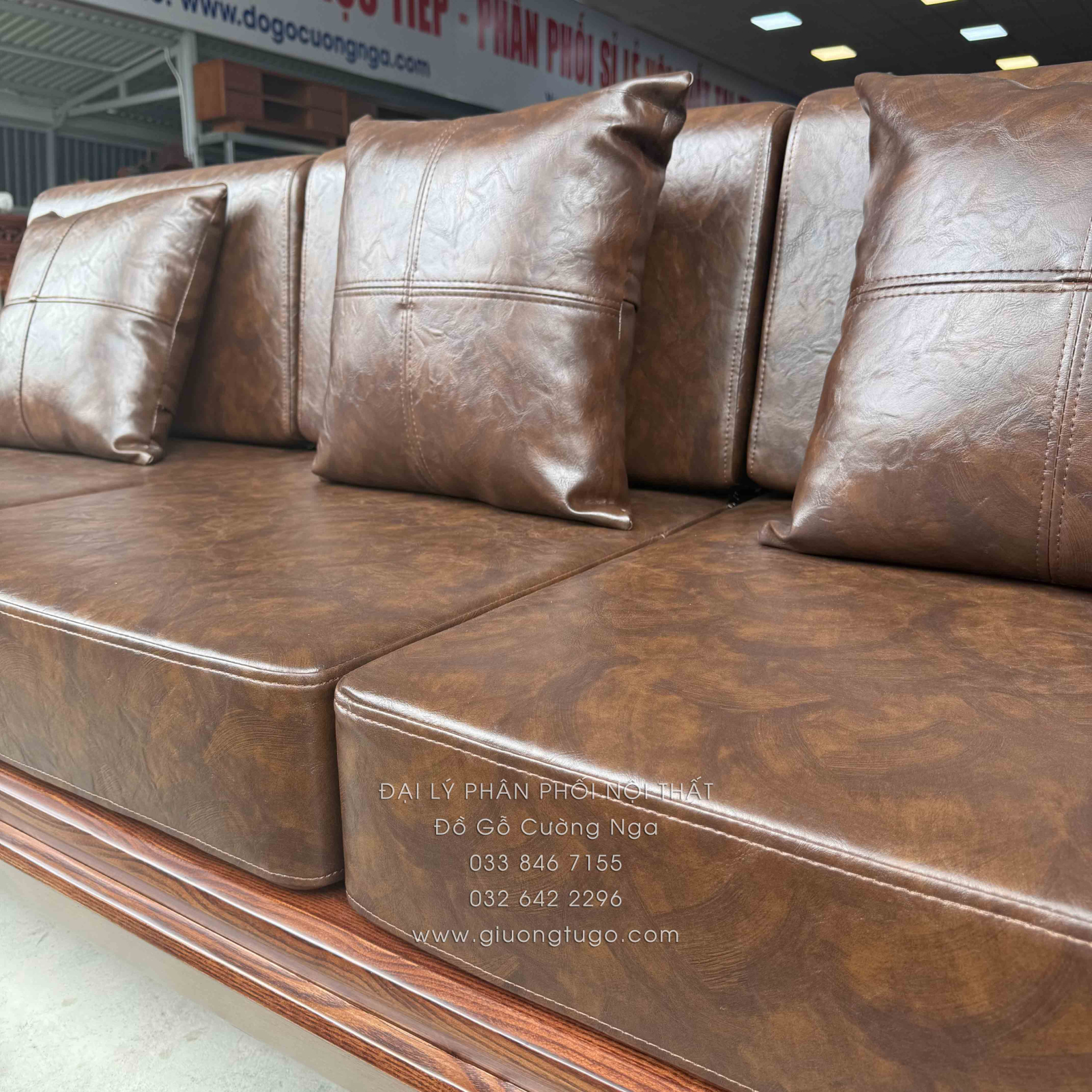 Bộ Sofa Gỗ Sồi Nga 2 Văng Chân Thuyền 3m3x2m6 Màu Óc Chó Cao Cấp