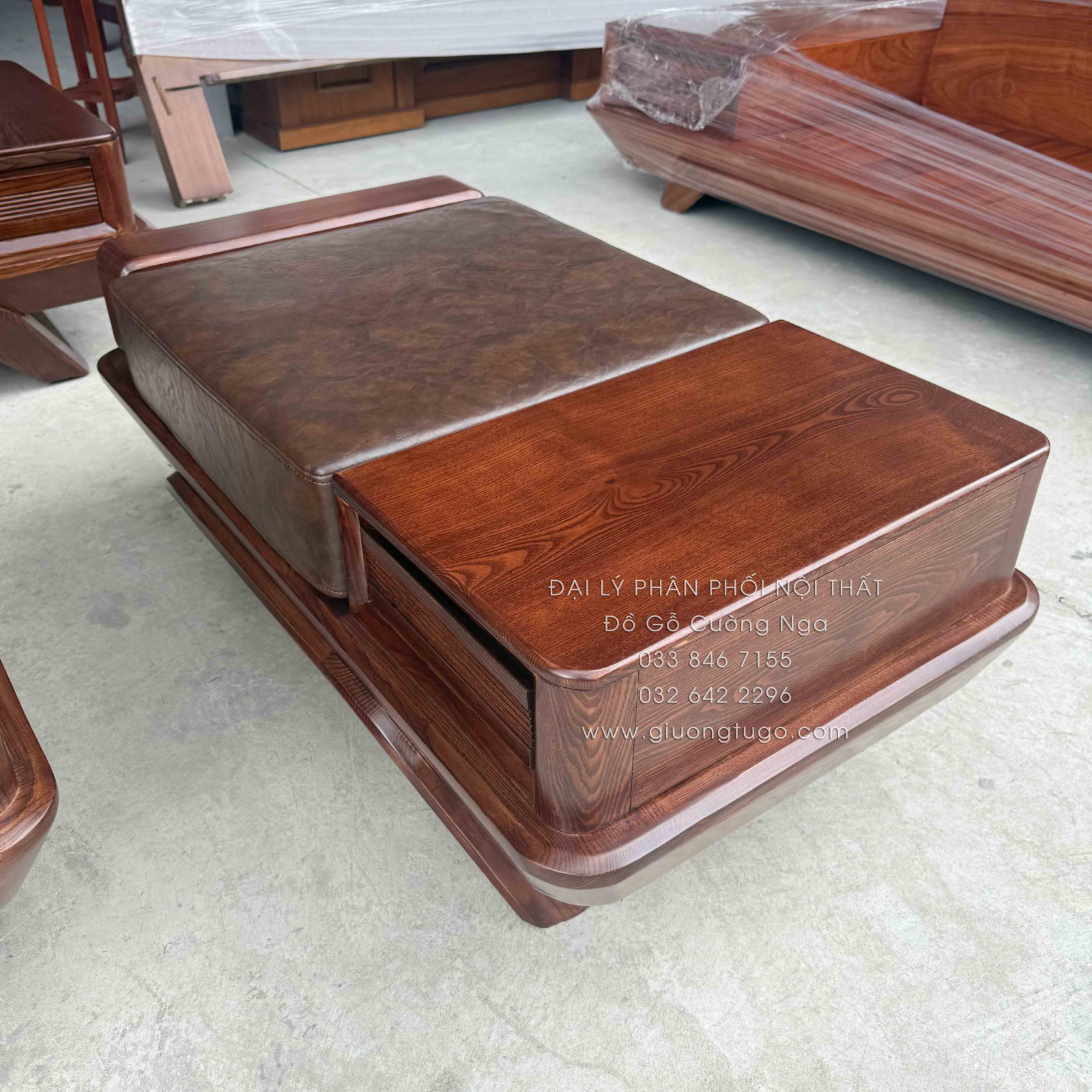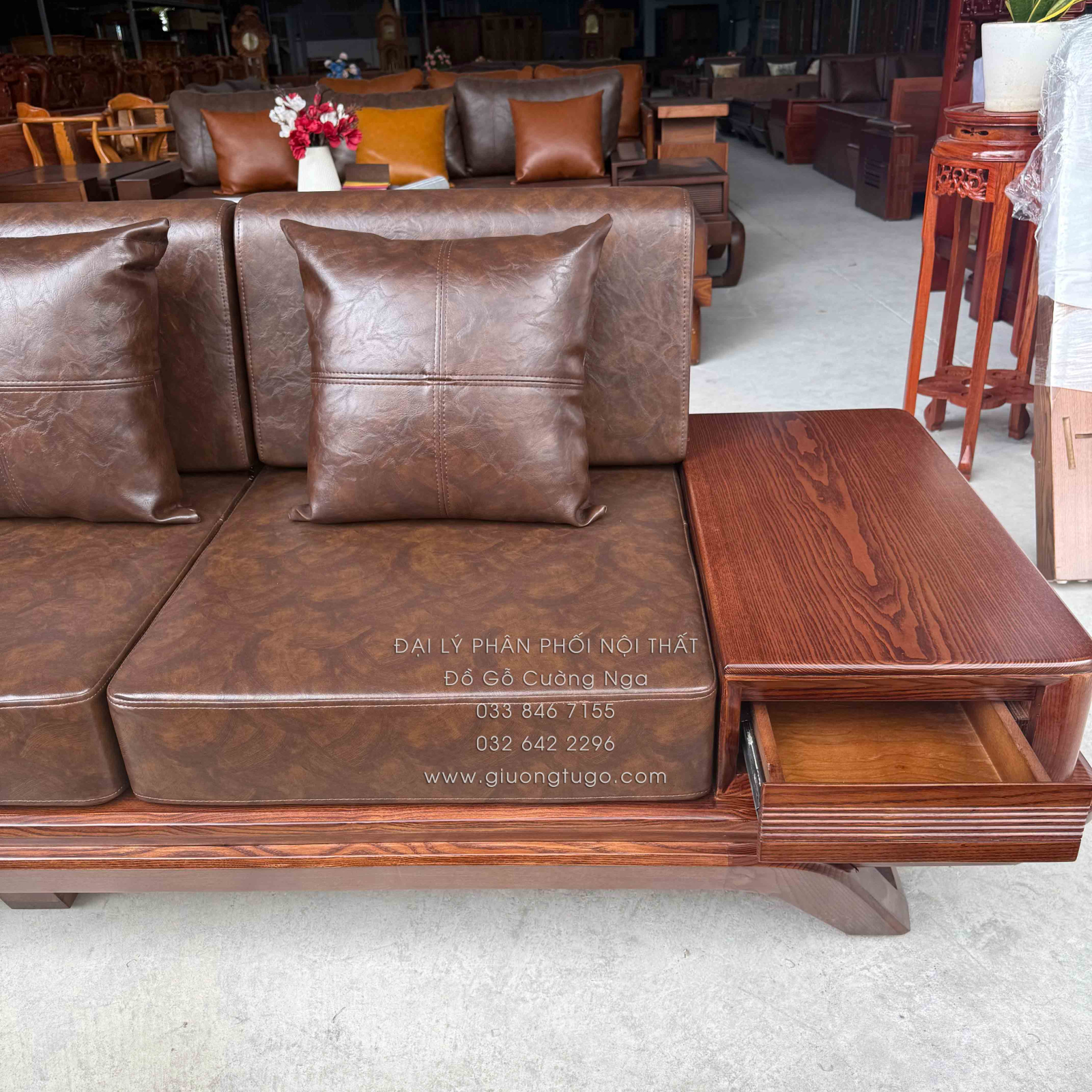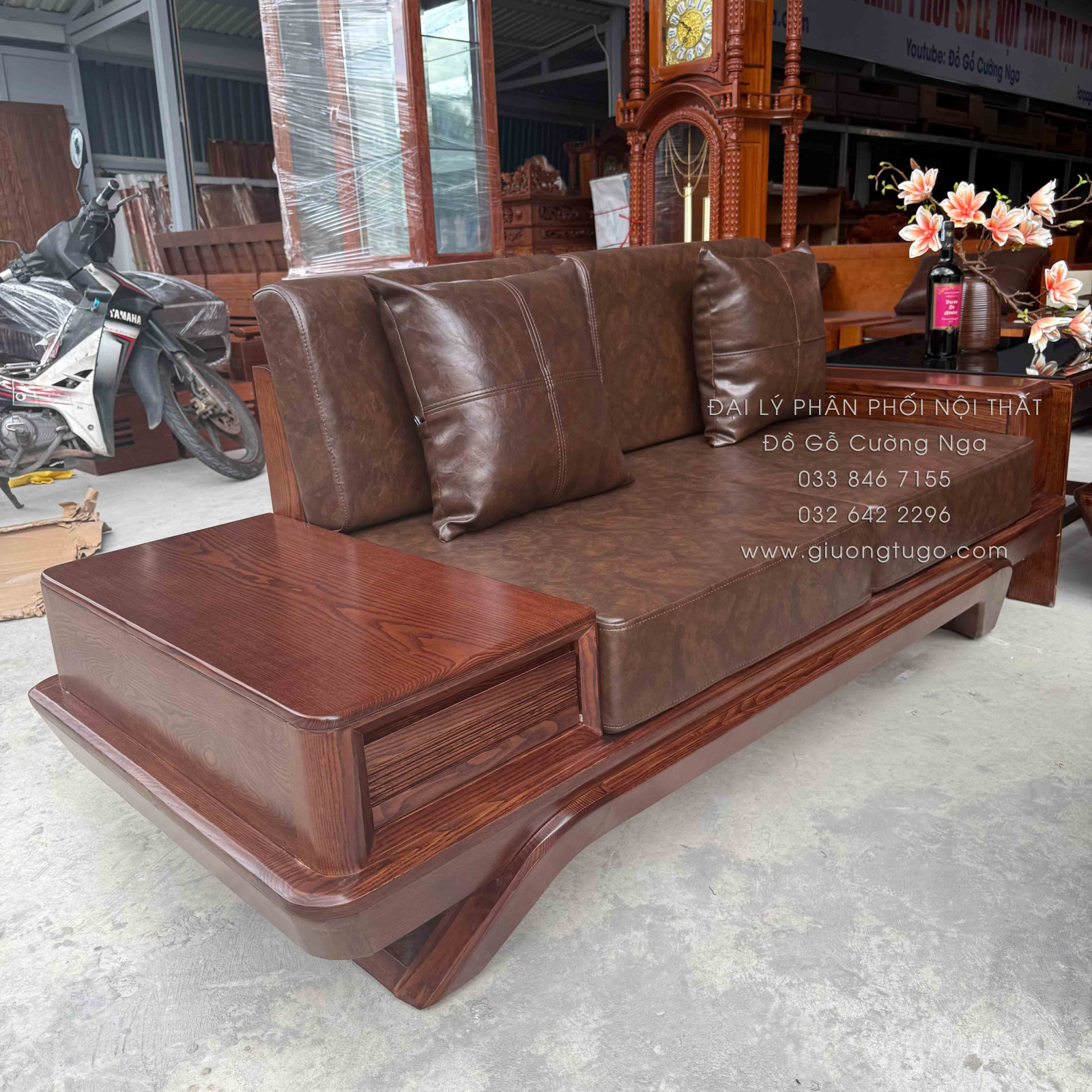 Bộ Sofa Gỗ Sồi Nga 2 Văng Chân Thuyền 3m3x2m6 Màu Óc Chó Cao Cấp