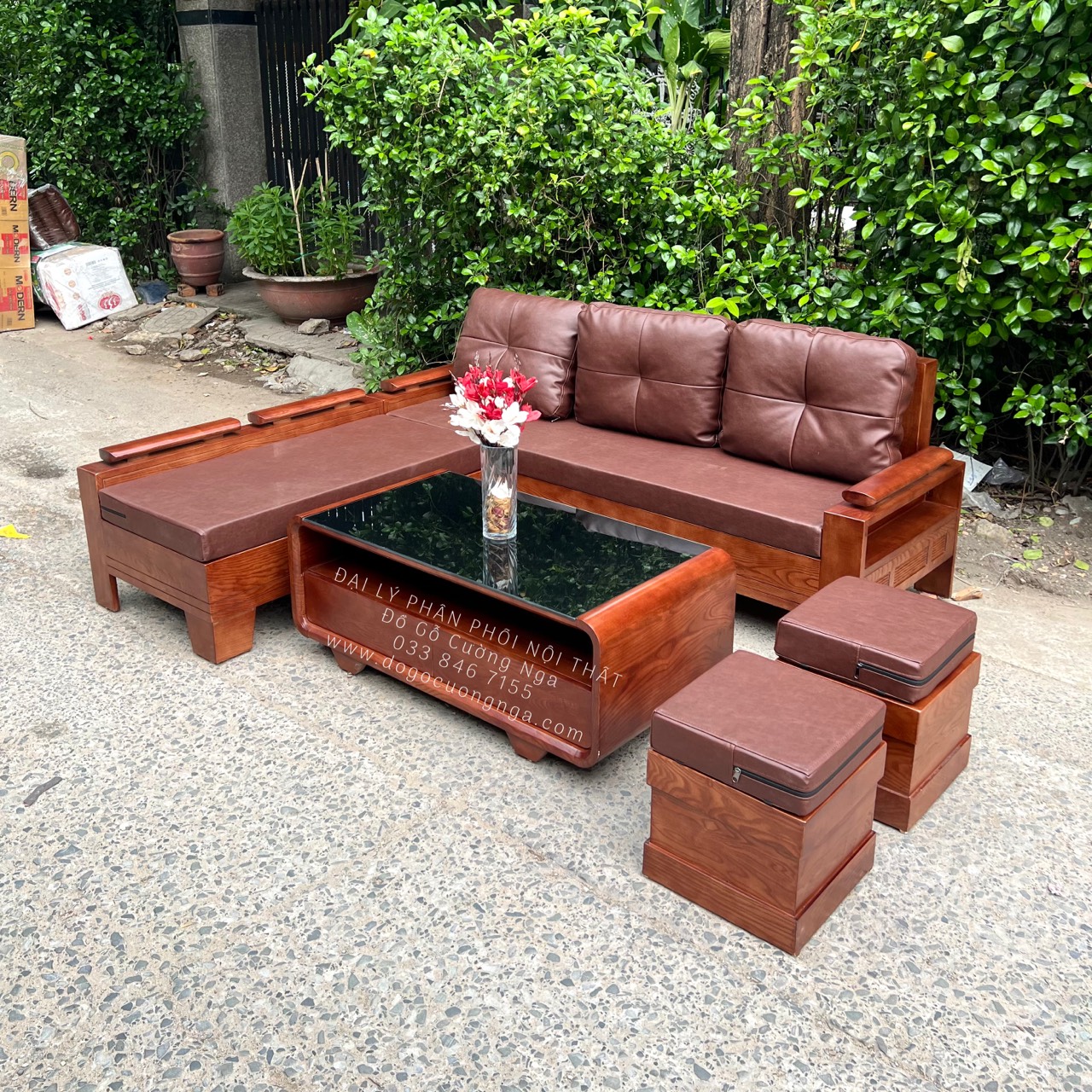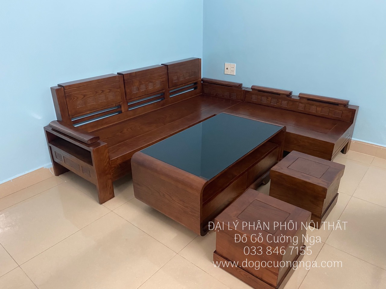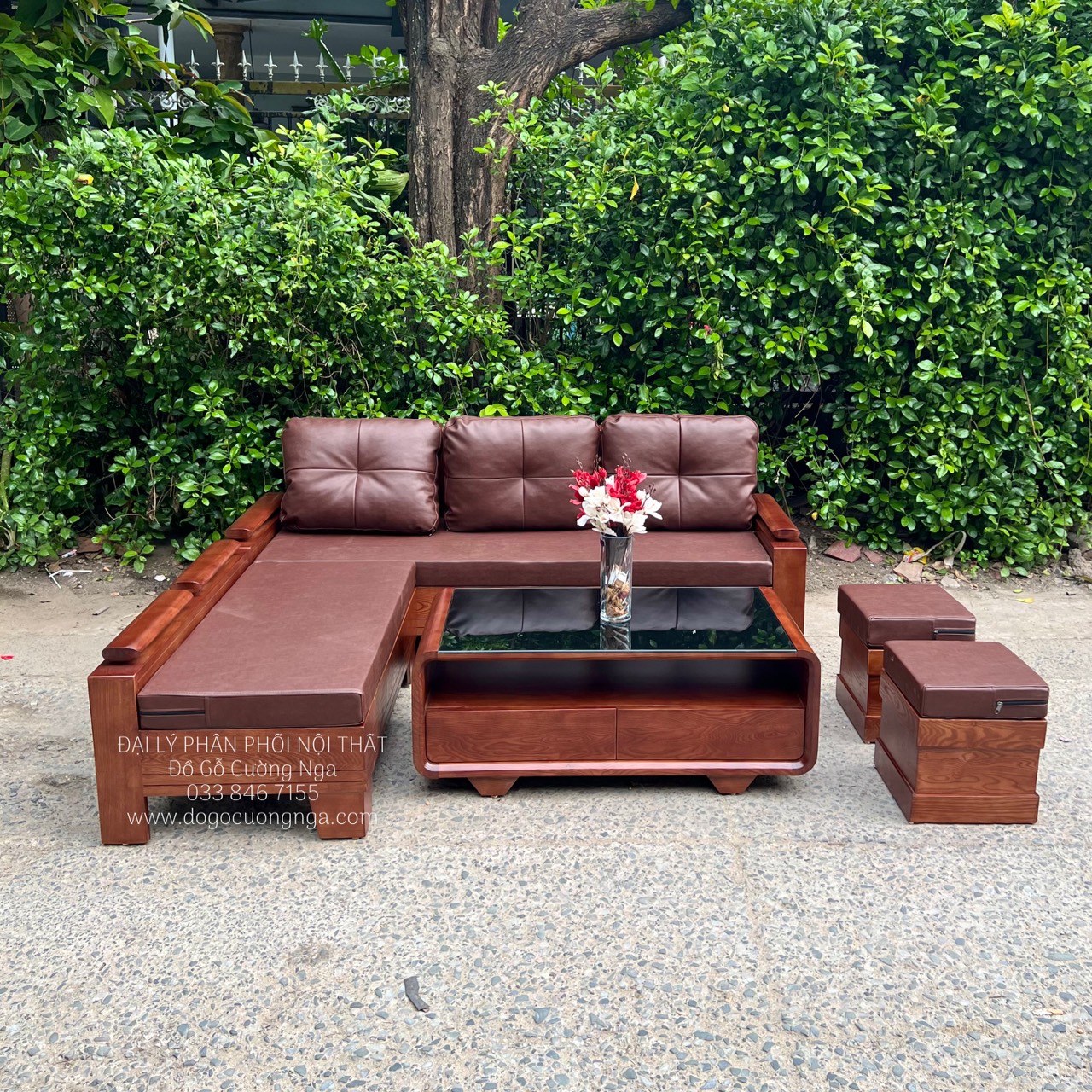 Bộ sofa góc L gỗ sồi màu tự nhiên giá rẻ