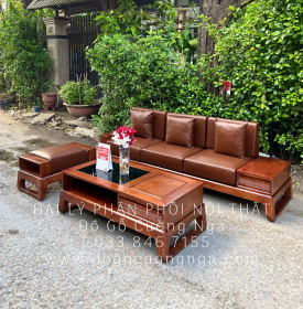 Bộ Sofa Gỗ Sồi Nga Góc L Chân Thuyền 2m8x1m9 Màu Óc Chó Sang Trọng