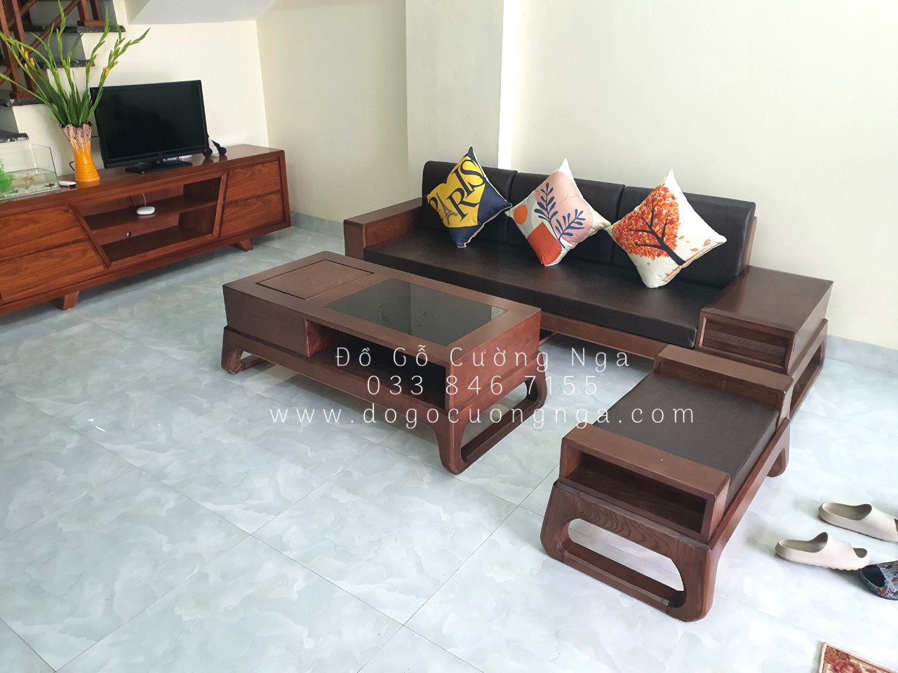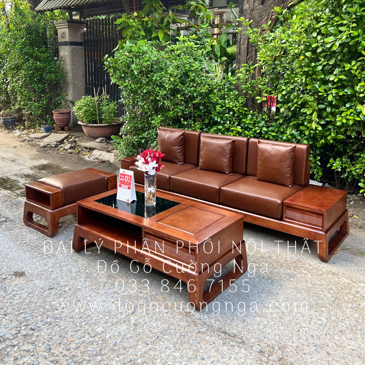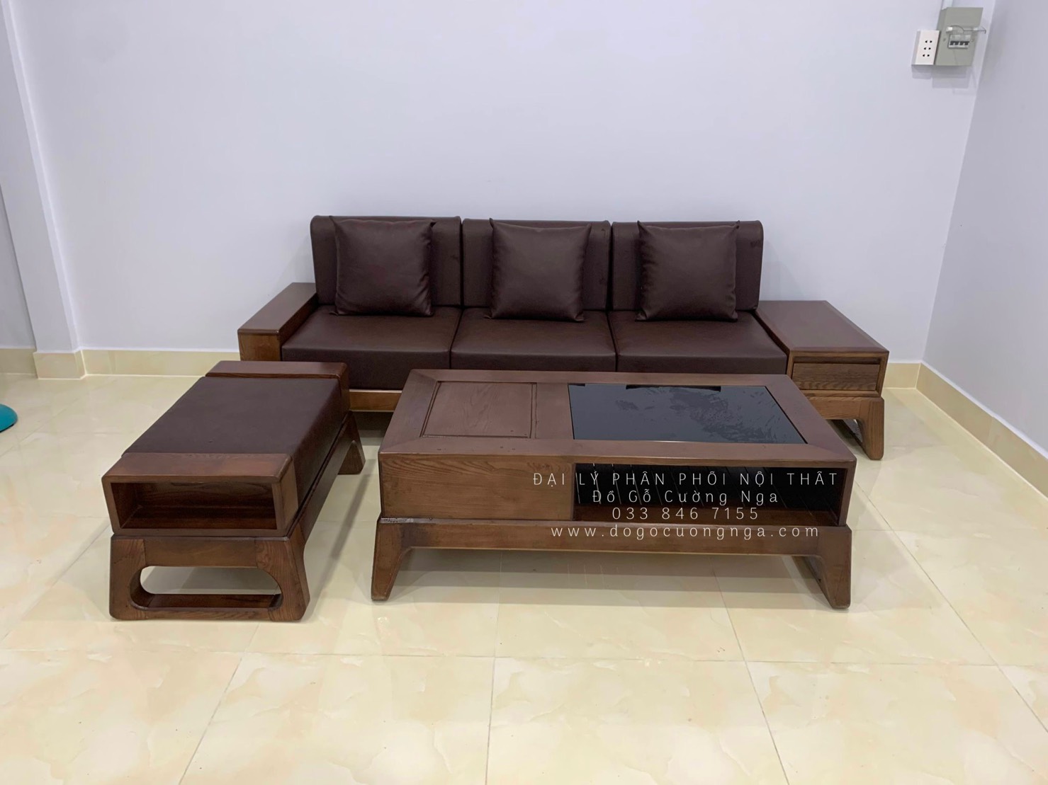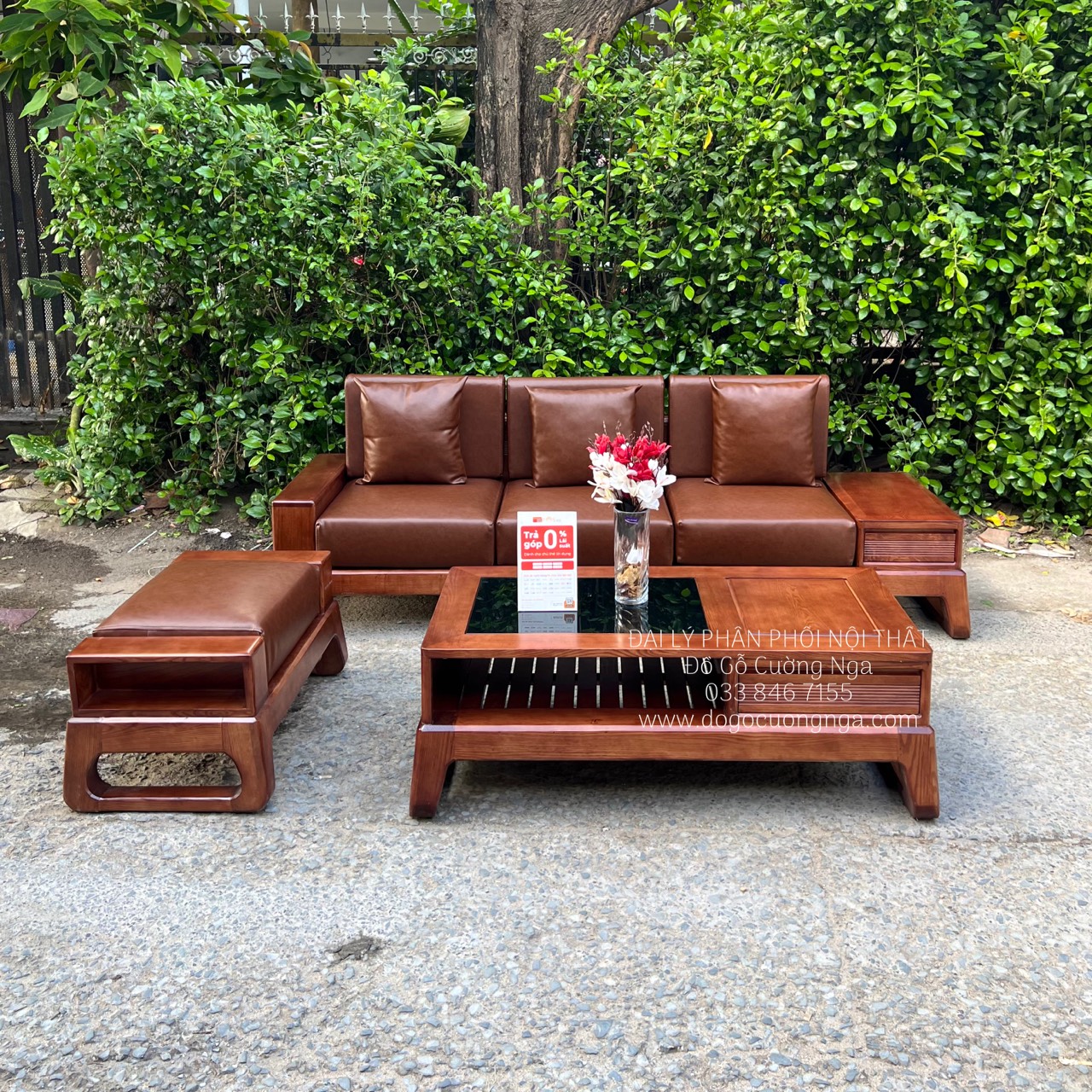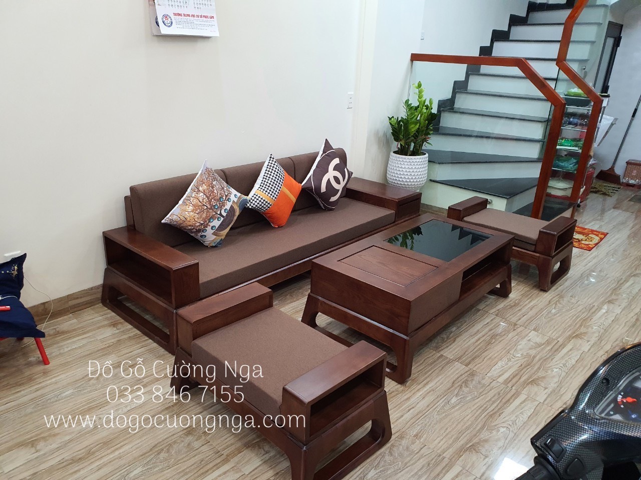 Bộ Sofa Văng Gỗ Sồi Nga Lau Màu Óc Chó 2m3 Kèm Nệm