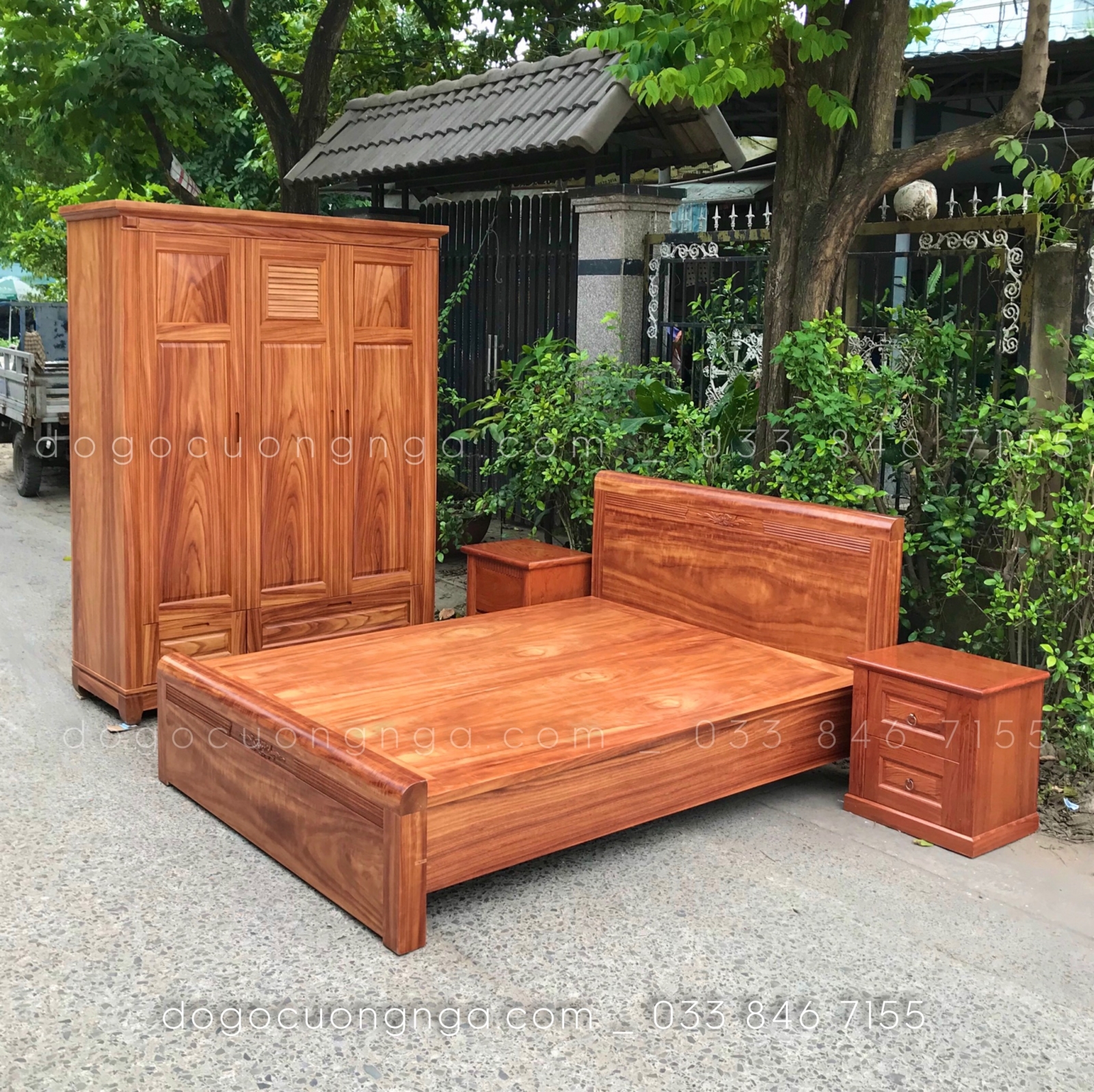Combo nội thất phòng ngủ gỗ cẩm tự nhiên - mẫu hiện đại