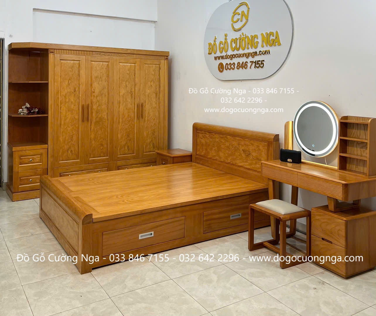 Combo phòng ngủ gỗ gõ đỏ 4 chi tiết