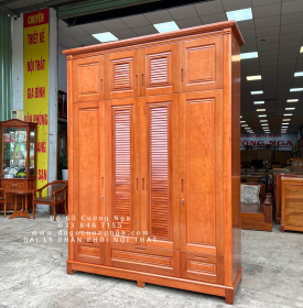 1 tủ áo gỗ xoan đào 4 cánh x cao 2m55