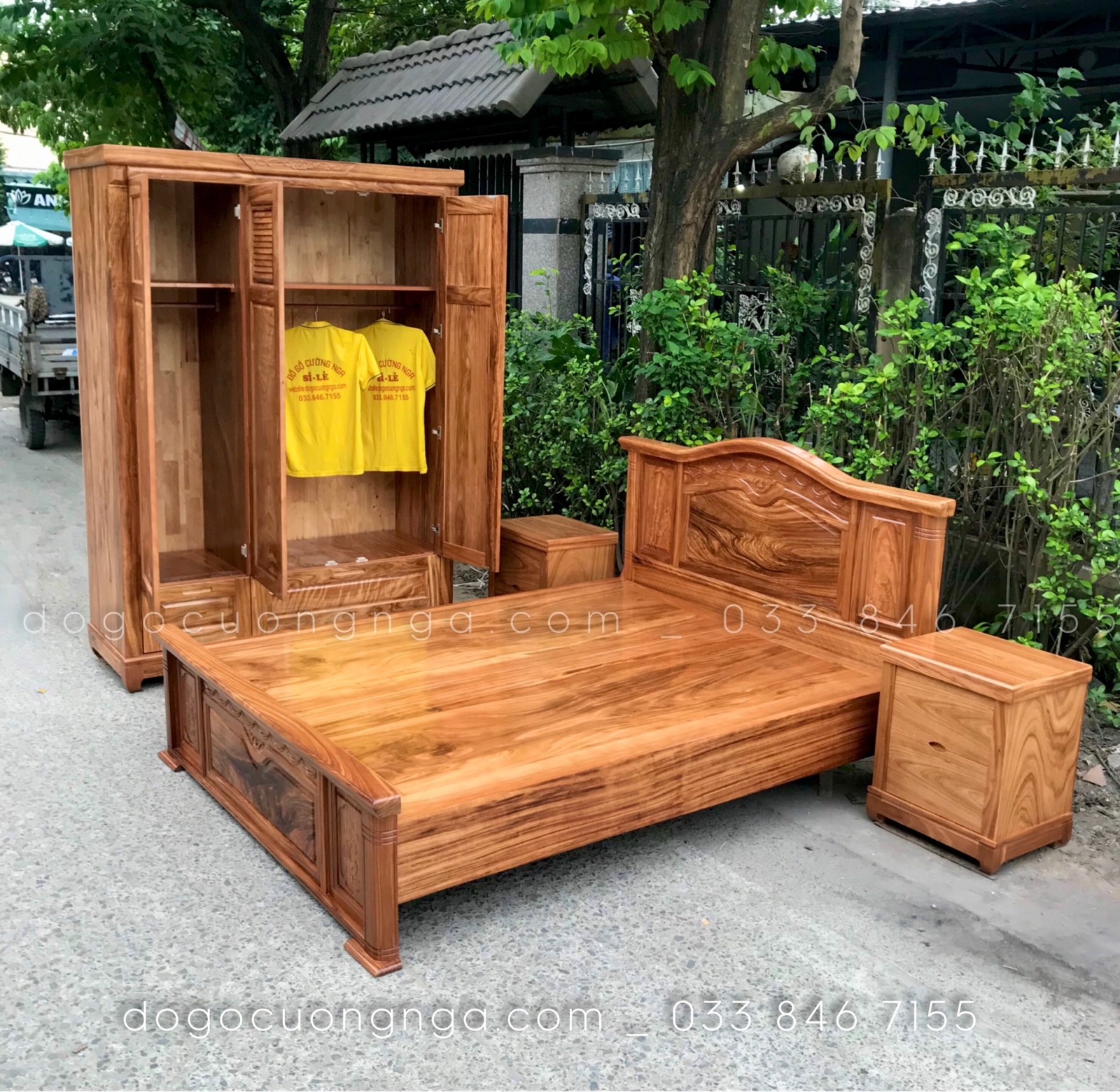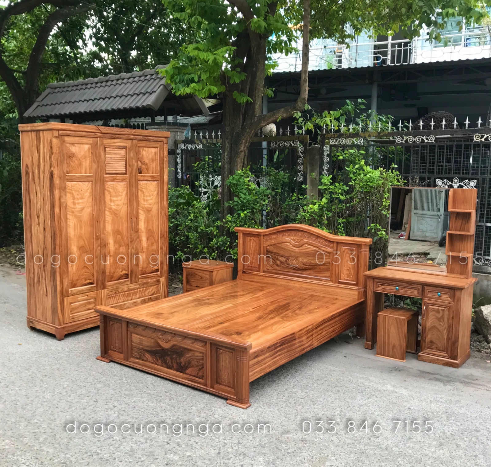 Combo phòng ngủ gỗ hương xám đẹp - mẫu mới