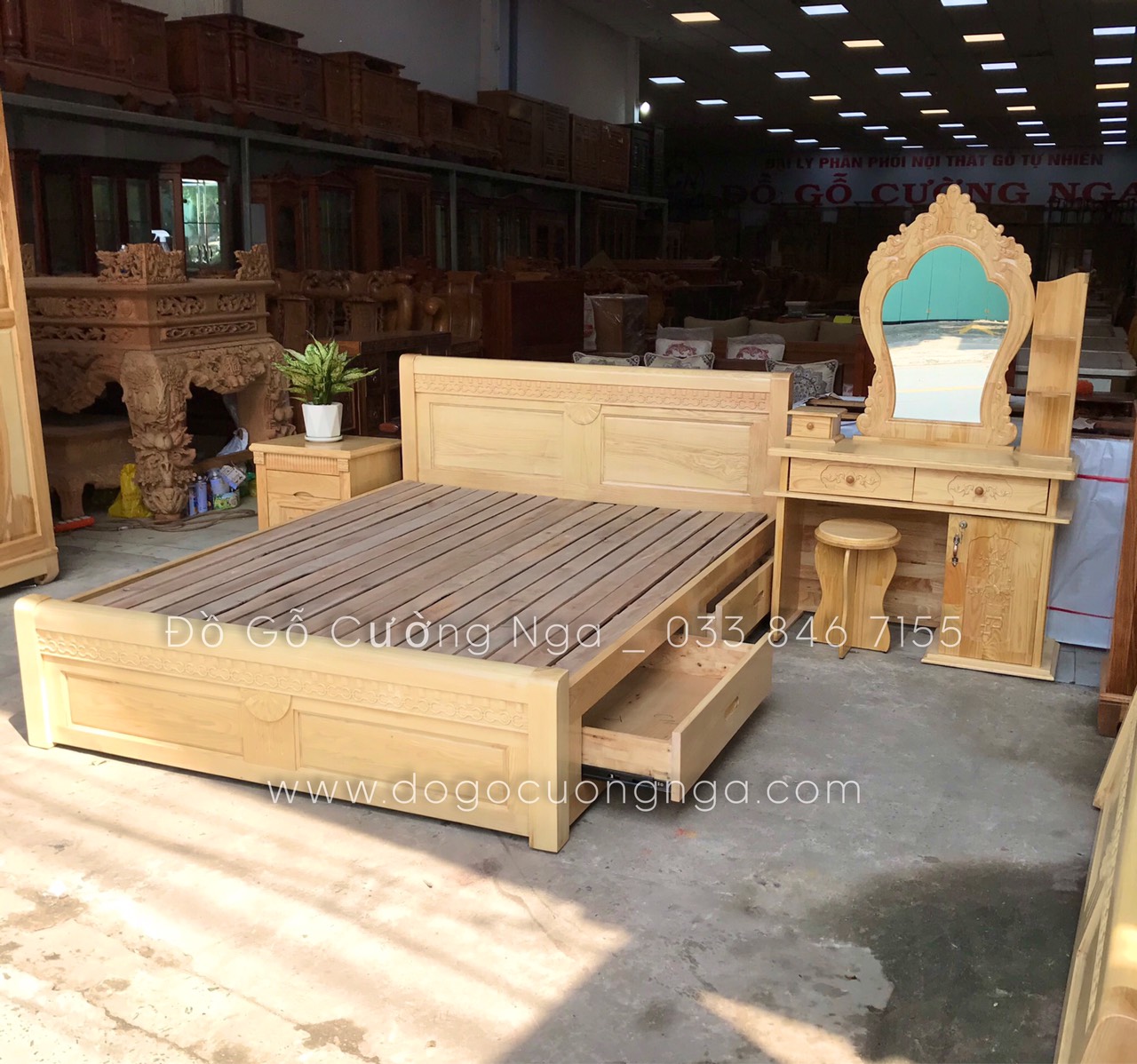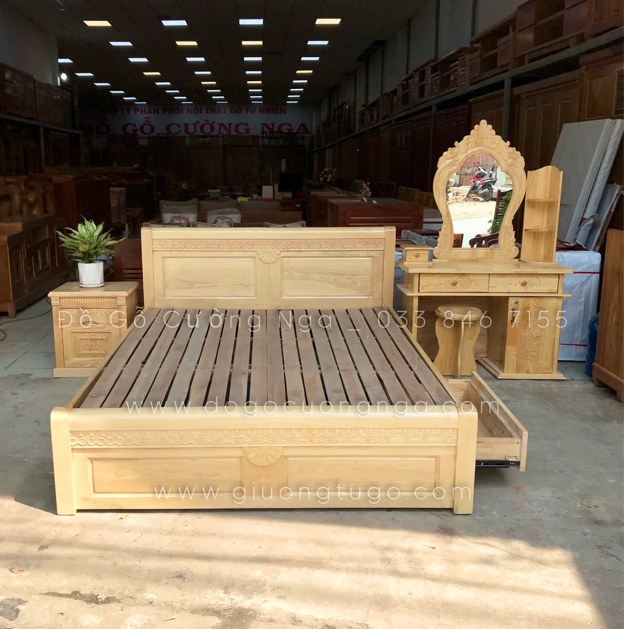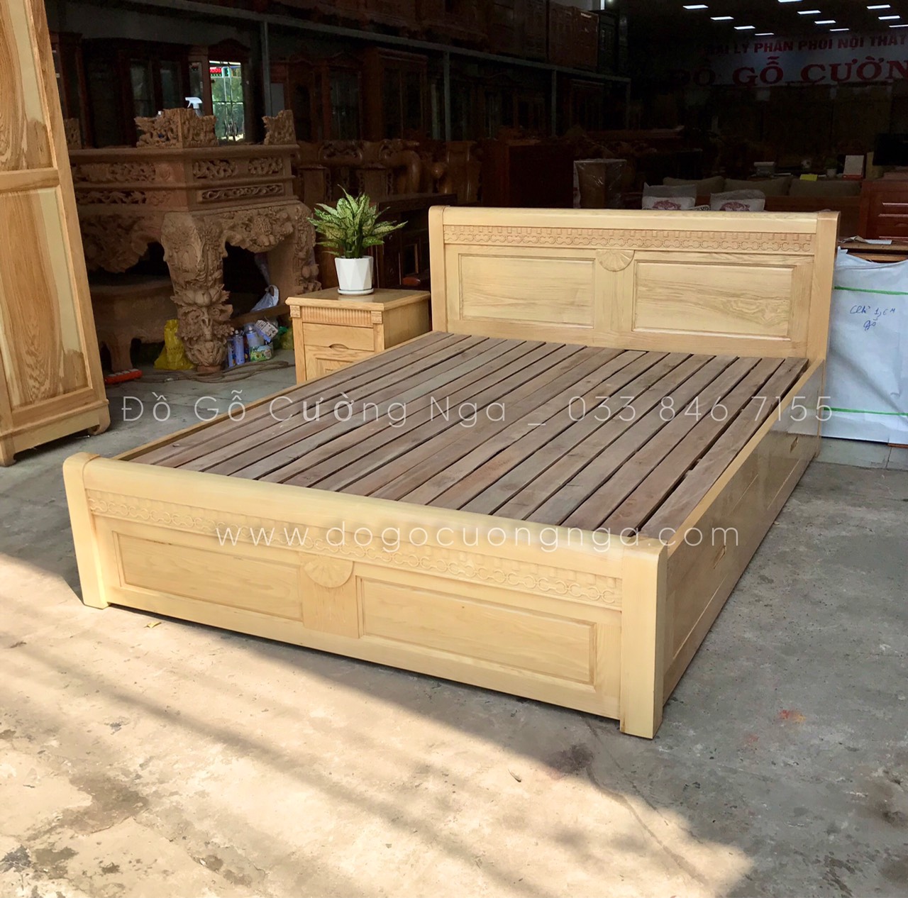 - Giường gỗ sồi nga ô kéo 1m6x2m - vạt