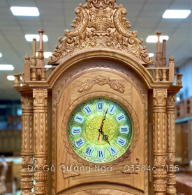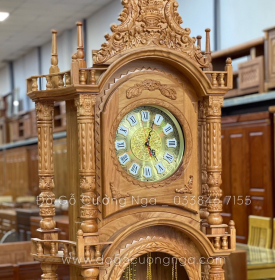 Đây sẽ món đồ trang trí nội thất hoàn hảo dành cho không gian phòng khách của gia chủ. Mặt đồng hồ sử dụng ký tự La Mã mang đậm phong cách cổ điển. Thân đồng hồ dài, phần ruột bên trong rỗng, hai bên và sau lưng đều được bao bọc bởi những thanh gỗ nguyên khối.