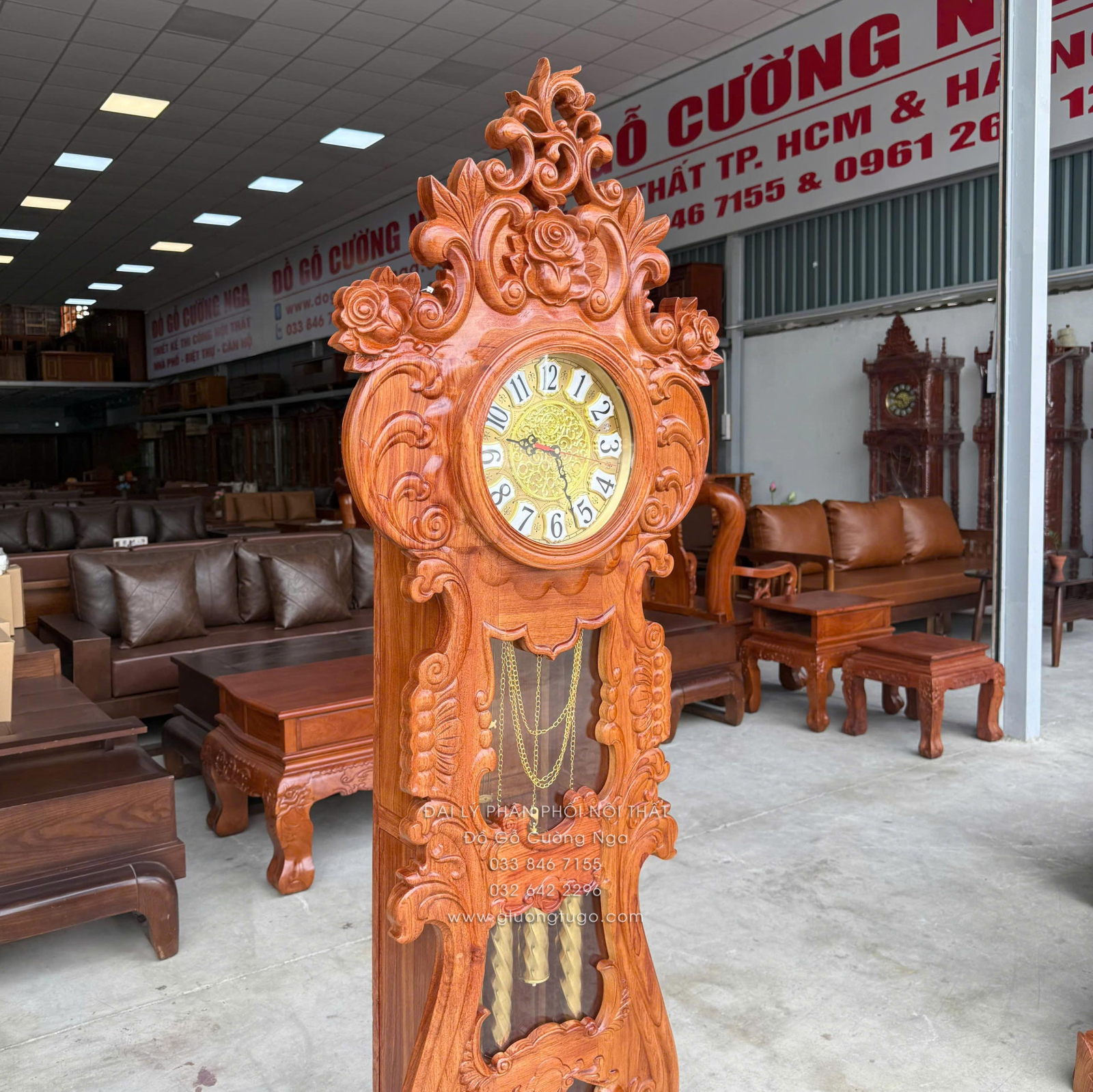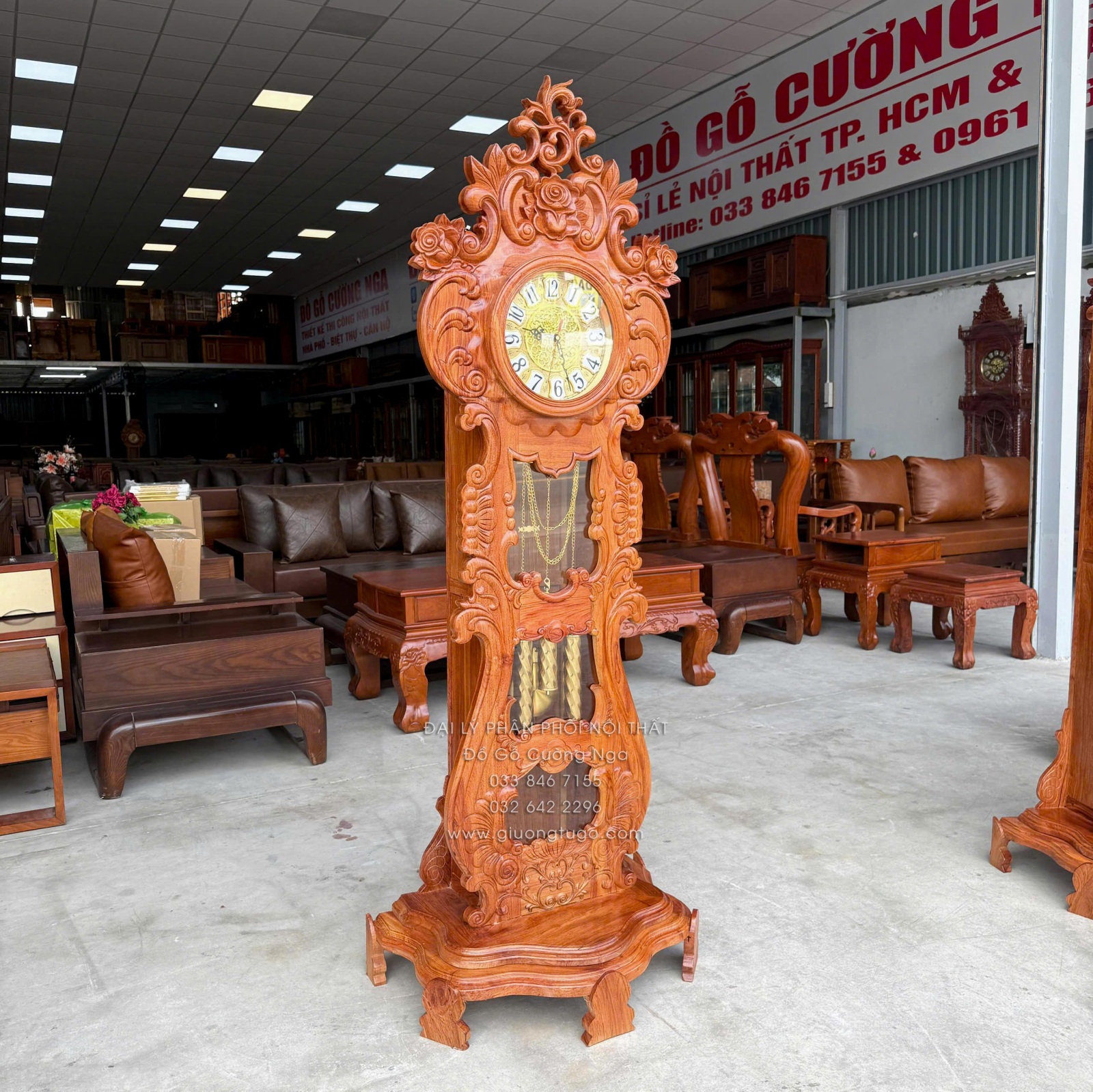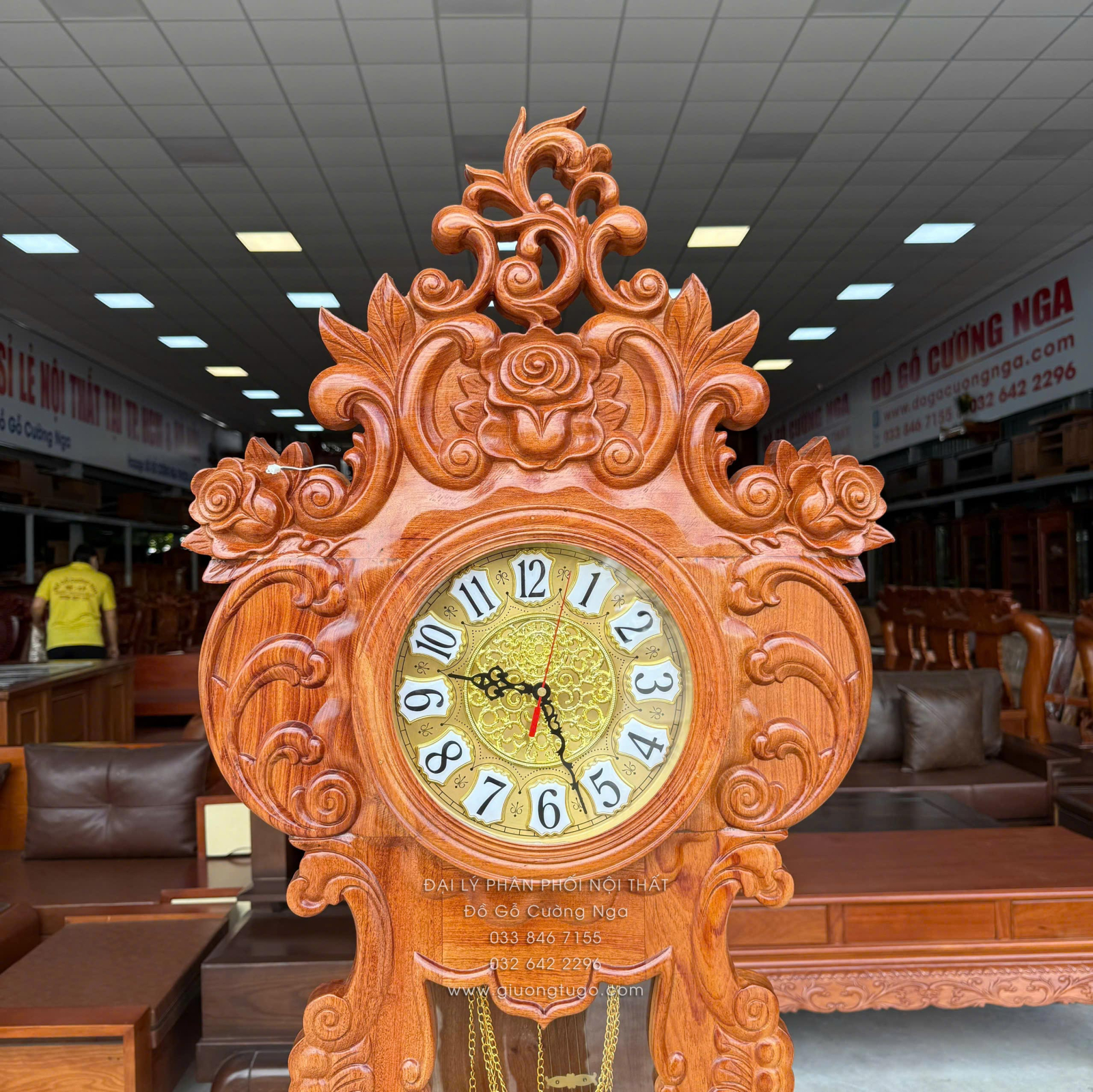 Đồng Hồ Gỗ Hương Đá Mẫu Hoa Hồng Cao Cấp 1m75