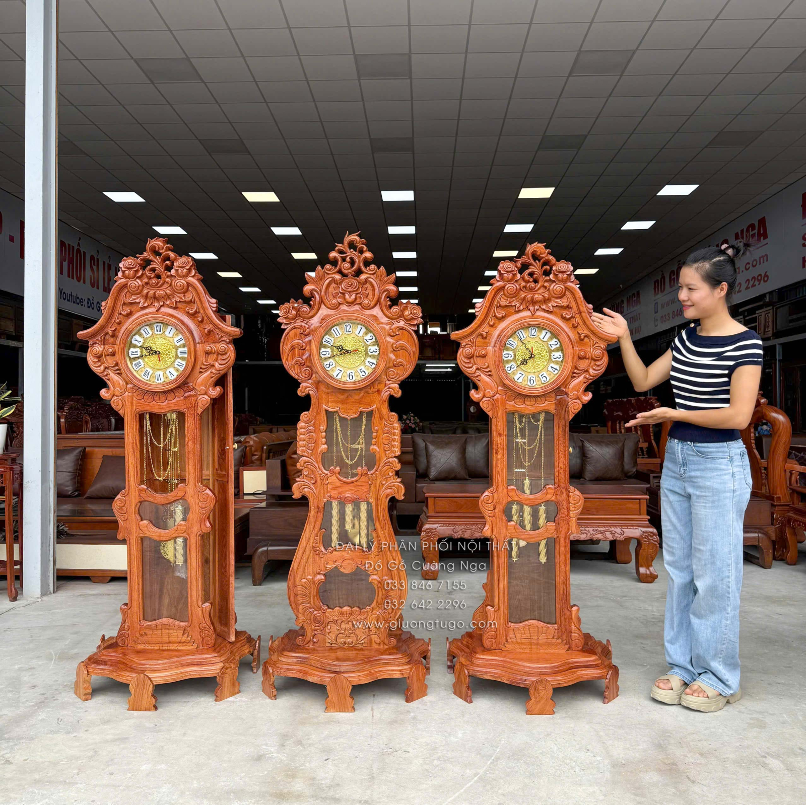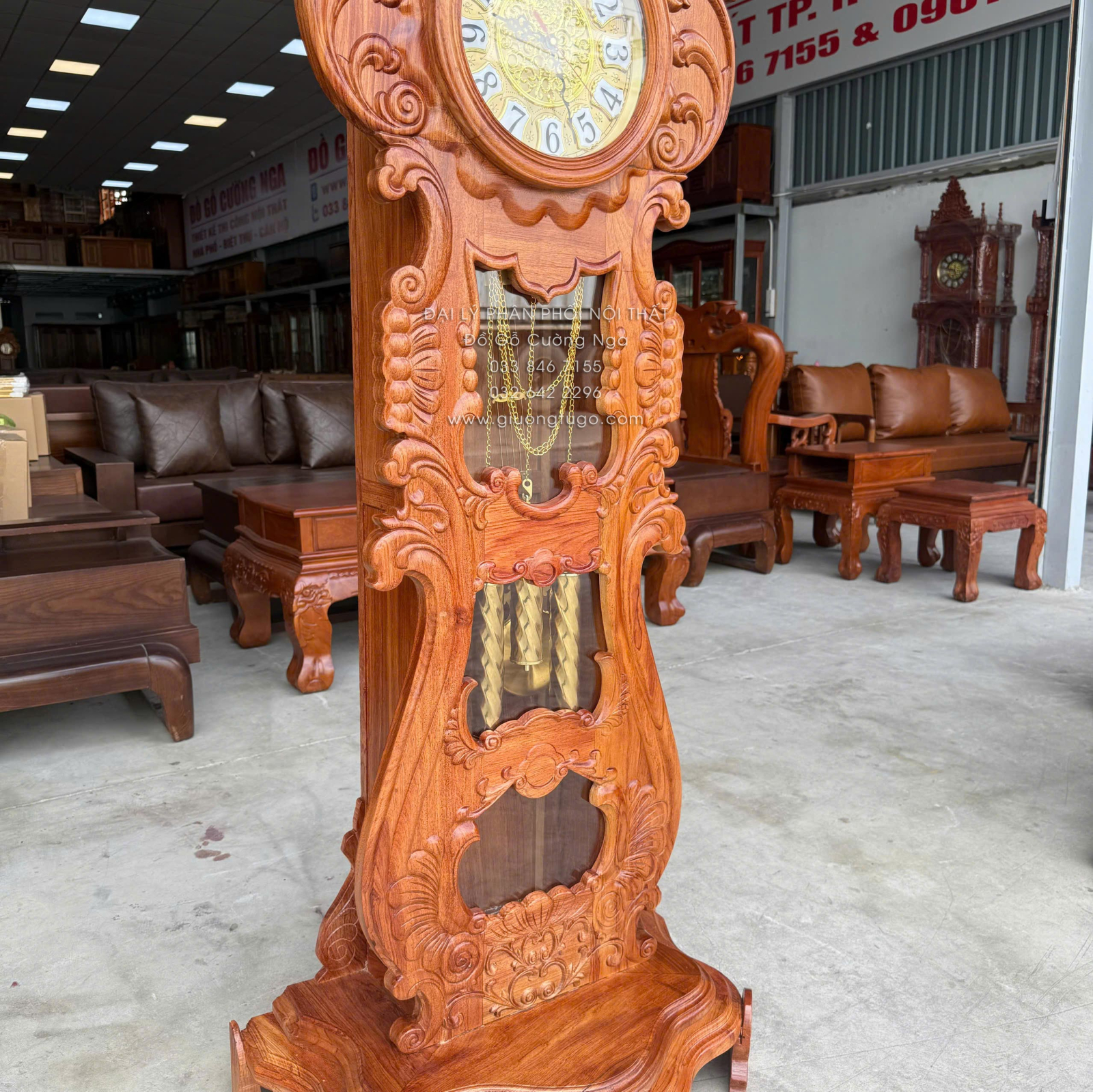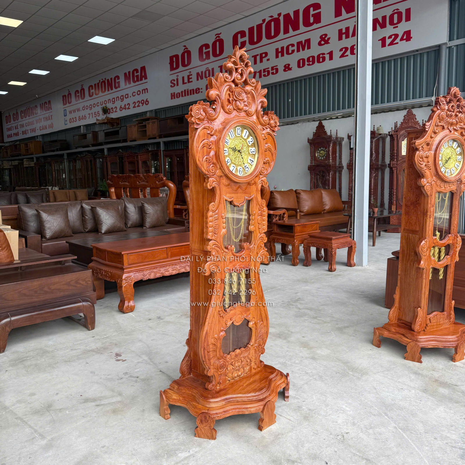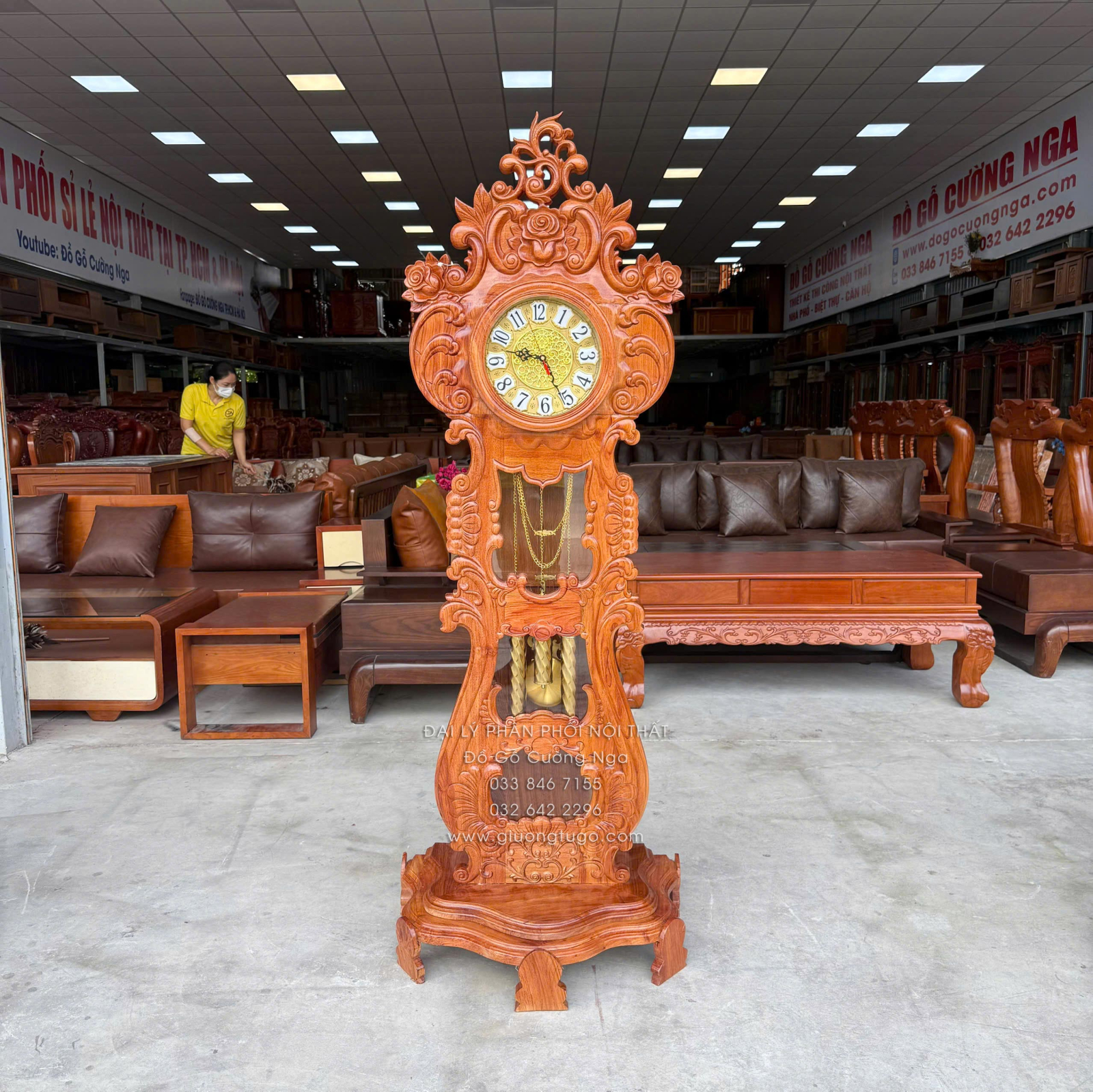 Đồng Hồ Gỗ Hương Đá Mẫu Hoa Hồng Cao Cấp 1m75