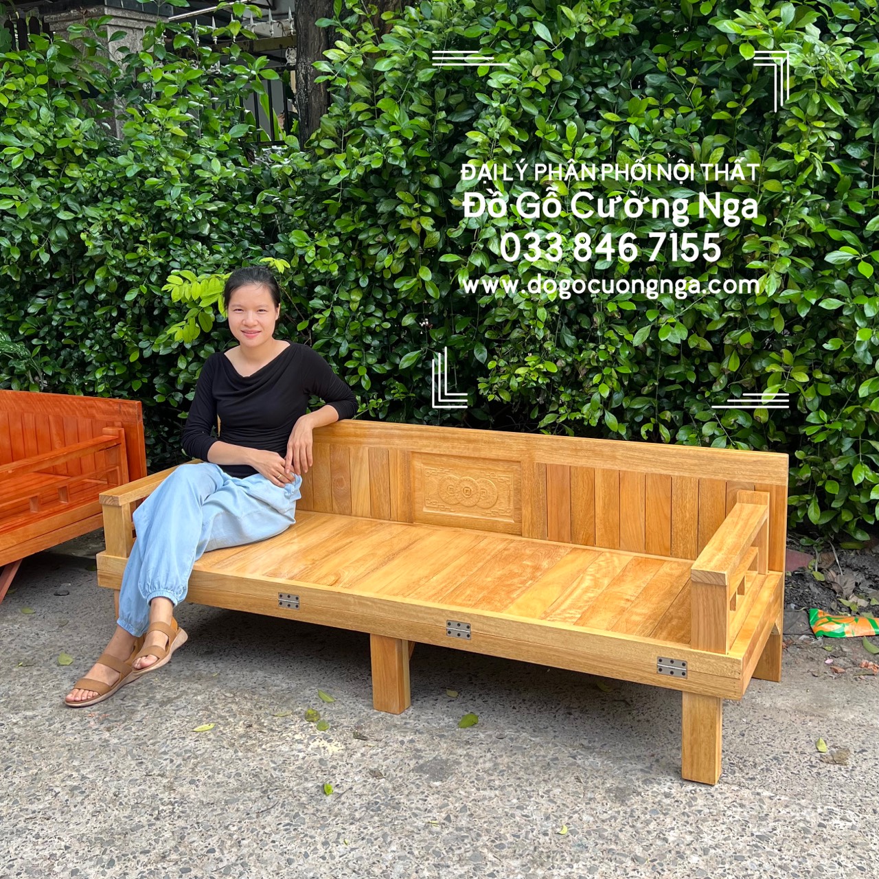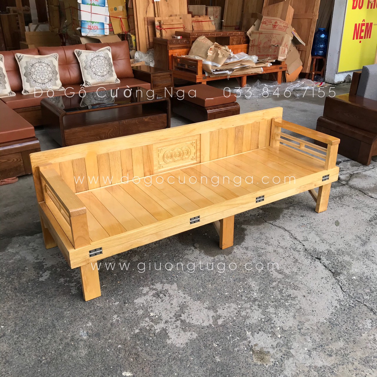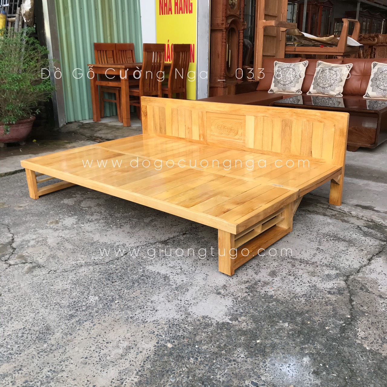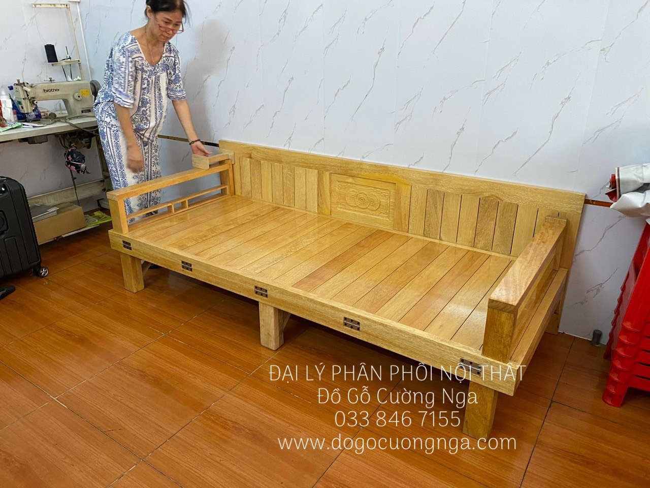 Ghế Giường Gấp Đa Năng Gỗ Sồi 1m4x1m9 Màu Tự Nhiên Giá Rẻ