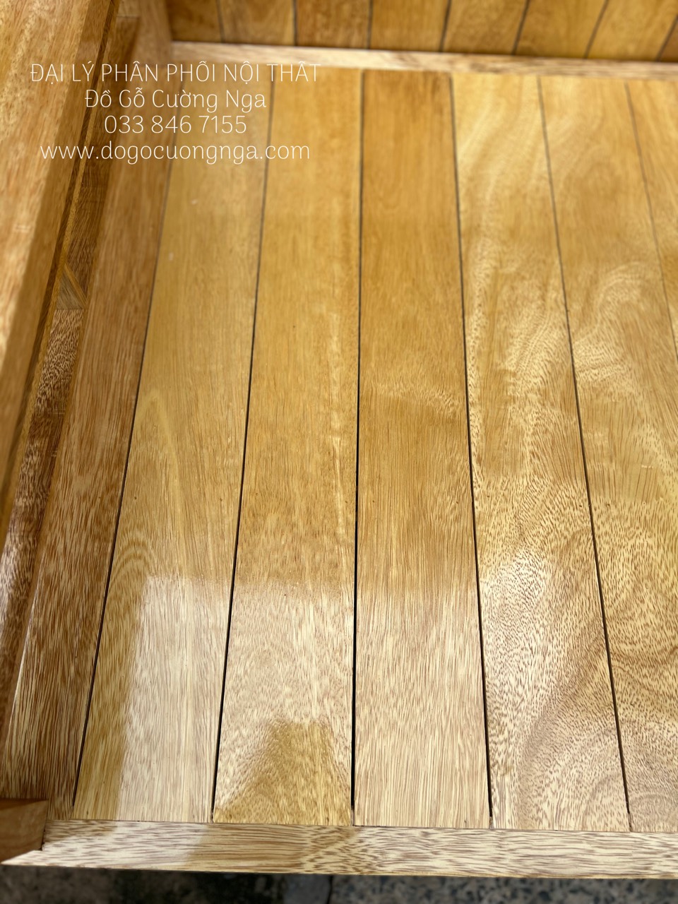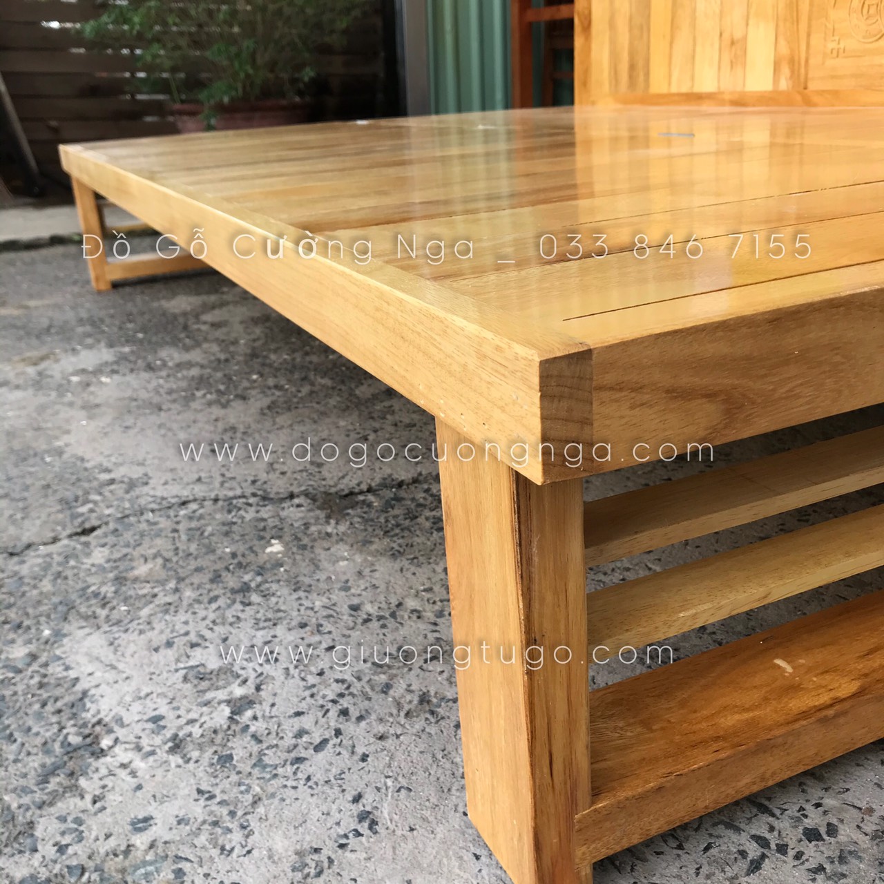 Giường Gấp Gỗ Xoan Đào 2 Ngăn Kéo Kèm Bàn (Có Kính) & Đôn Gỗ Sồi Bền Đẹp