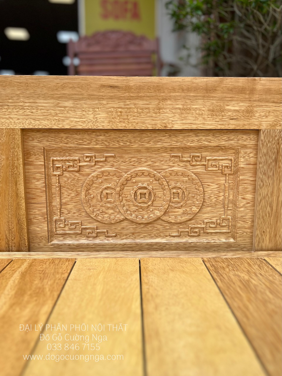 Bên cạnh đó, để tăng thêm tính trang trí cho mình, ghế giường gỗ 1m4x1m9 sử dụng họa tiết hoa lá nhỏ thêm phần đẹp mắt đem đến một sản phẩm tuyệt vời tăng thêm tính sang trọng, thẩm mỹ cho không gian phòng ở.