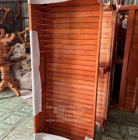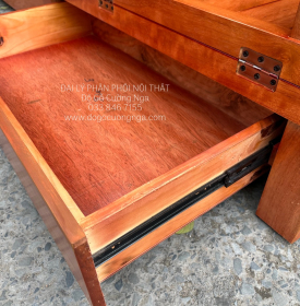 Giường Gấp Gỗ Xoan Đào 2 Ngăn Kéo Kèm Bàn (Có Kính) & Đôn Gỗ Sồi Bền Đẹp