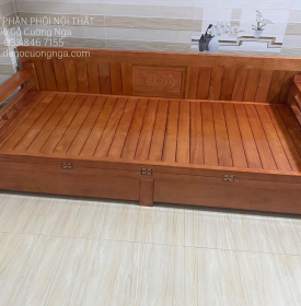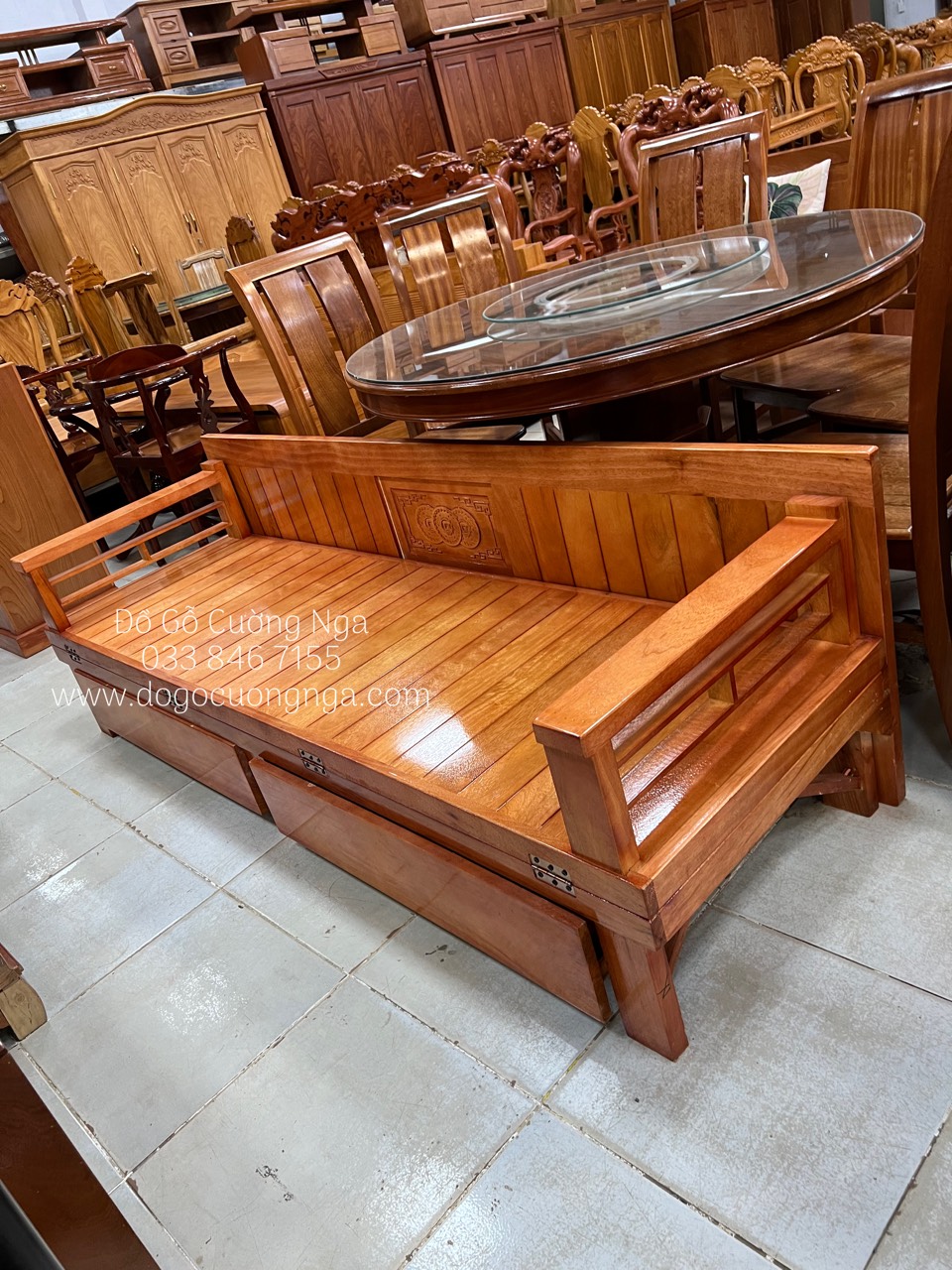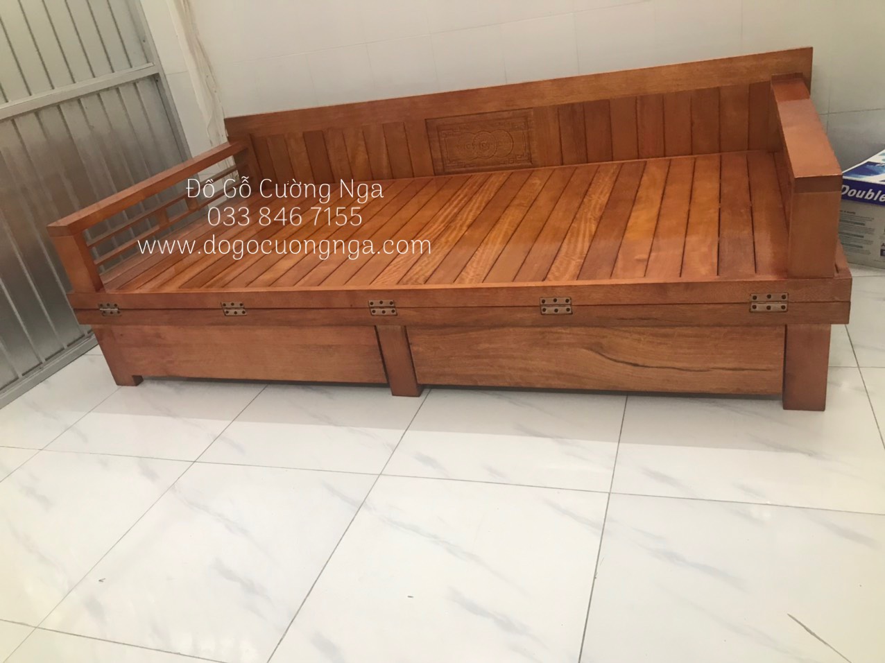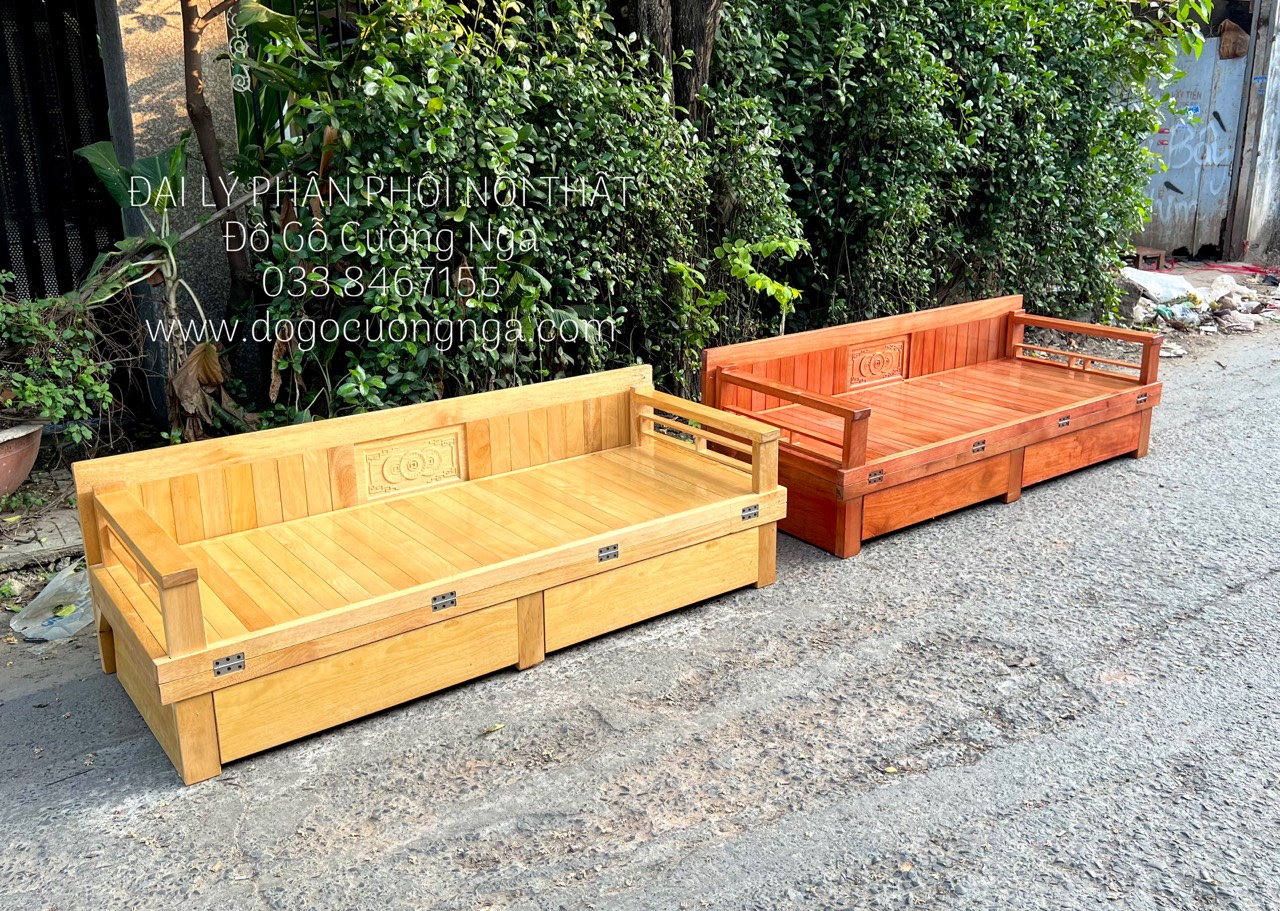 Ghế Giường Gỗ Sồi 2 Ngăn Kéo 1m4x1m9 Màu Cánh Gián Đẹp Giá Rẻ