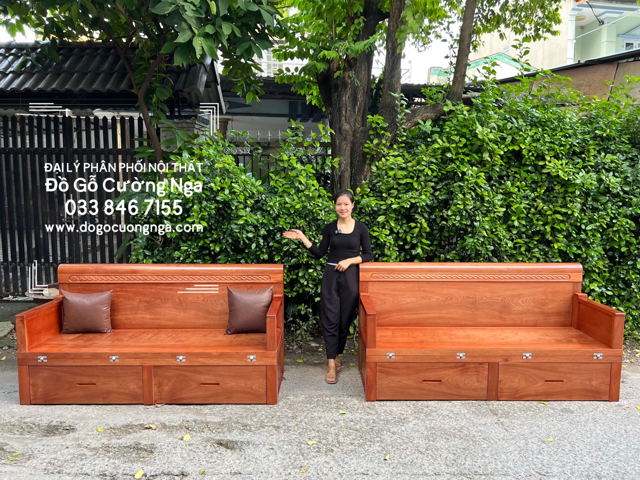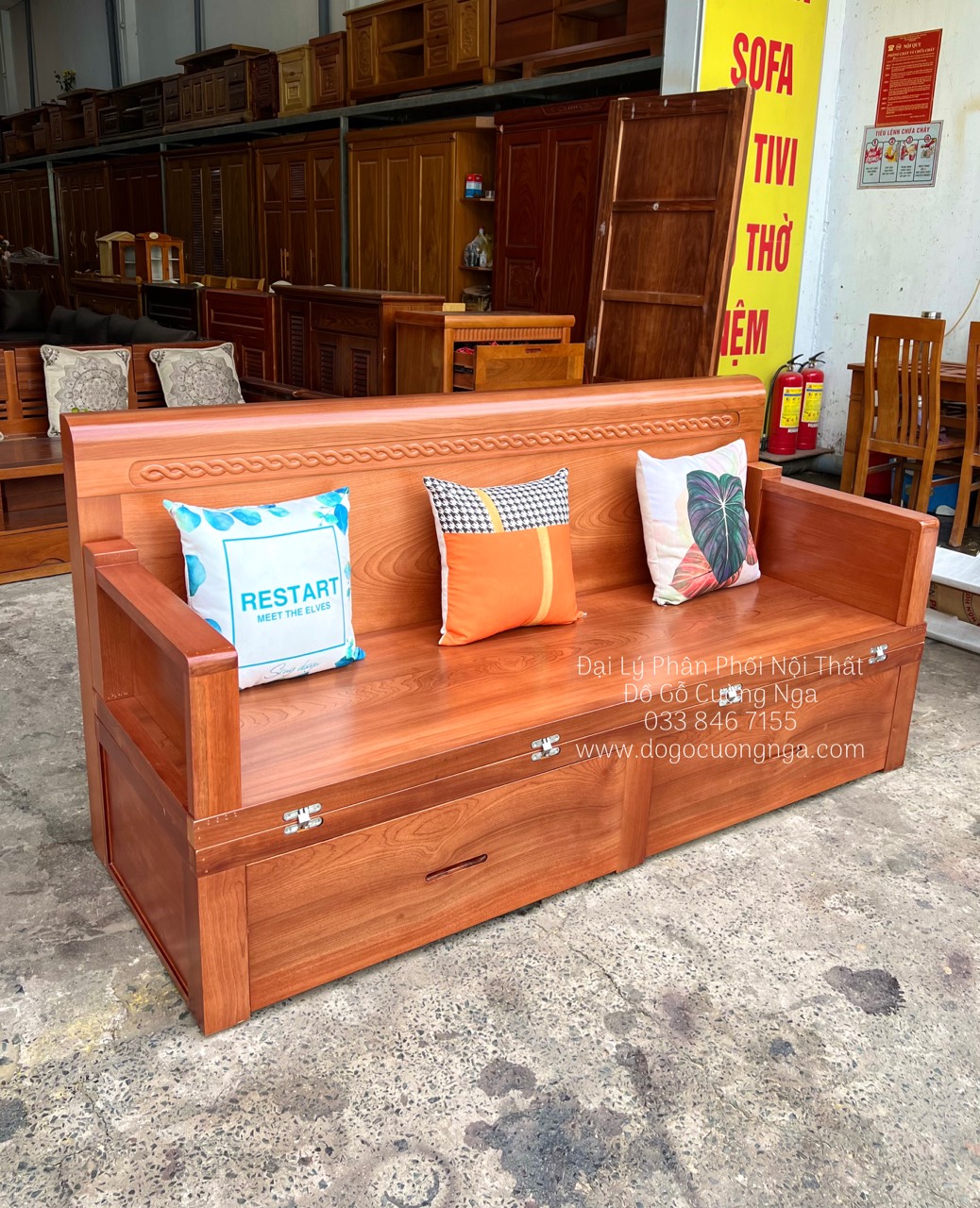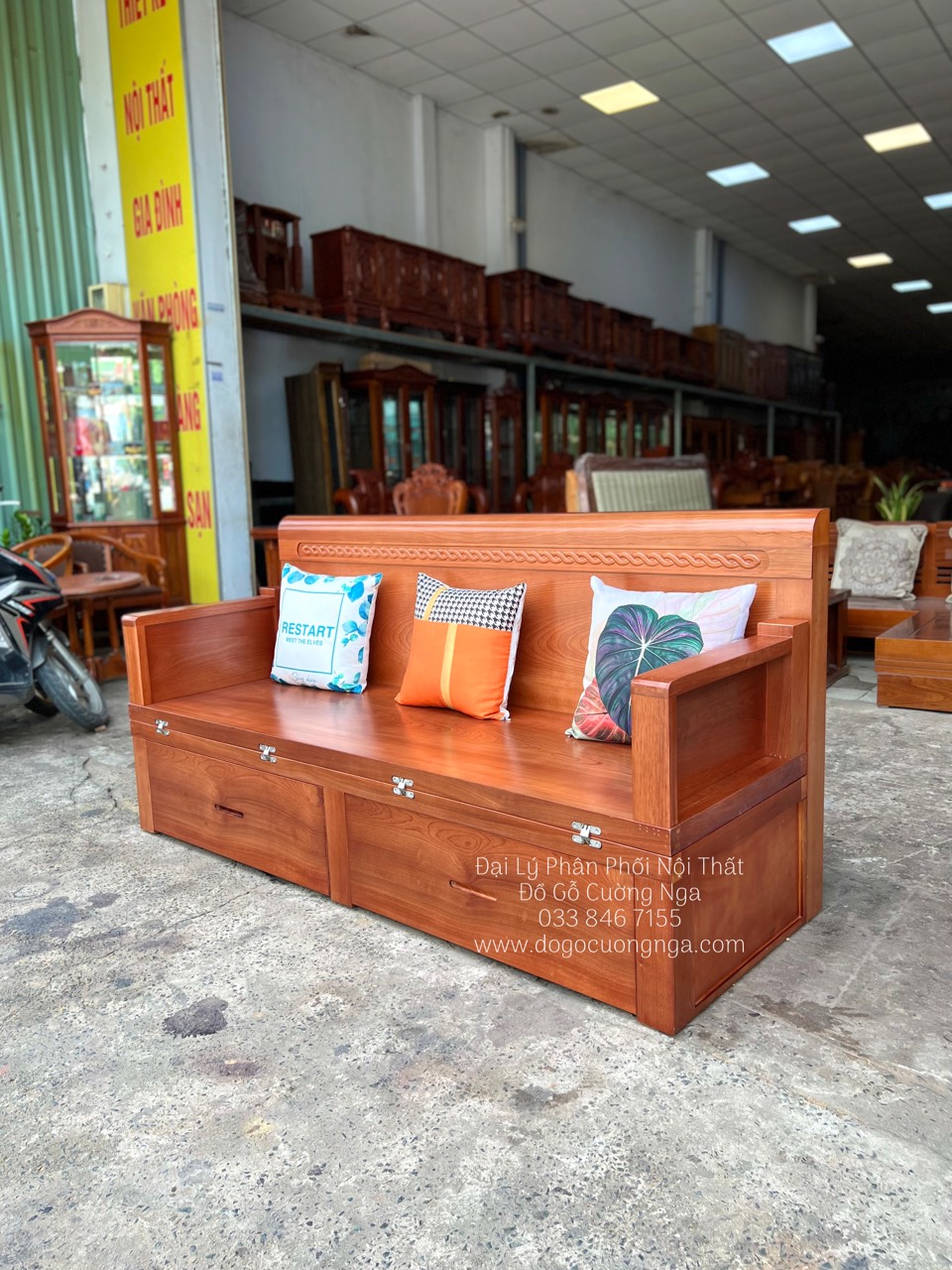 Ghế Giường Gỗ Xoan Đào 2 Ngăn Kéo 1m6x2m Hiện Đại