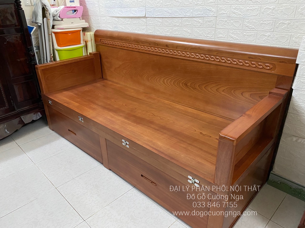 Chi tiết về mẫu giường gấp - ghế giường gỗ Xoan Đào 2 ngăn kéo hiện đại