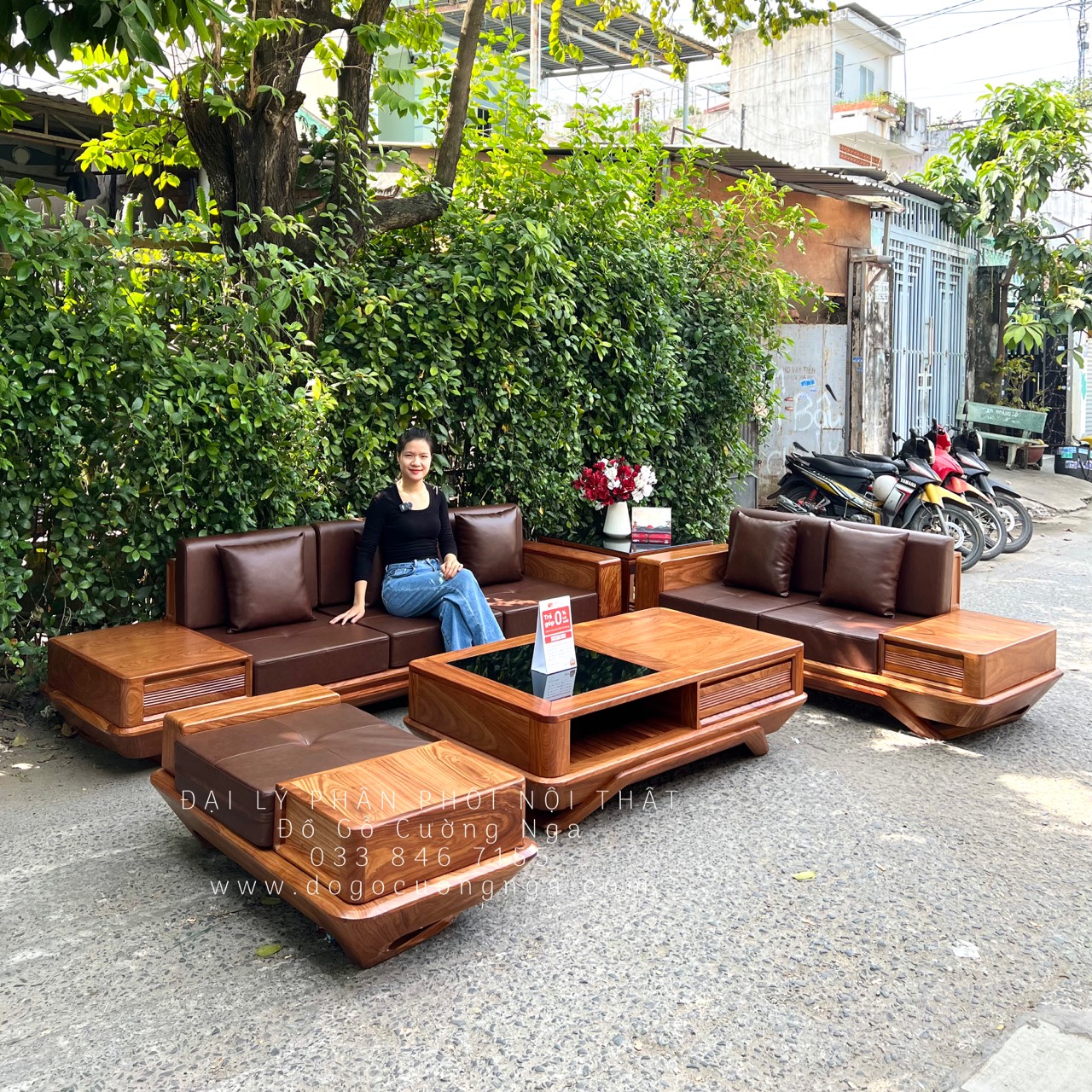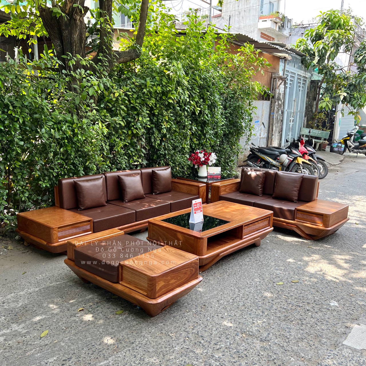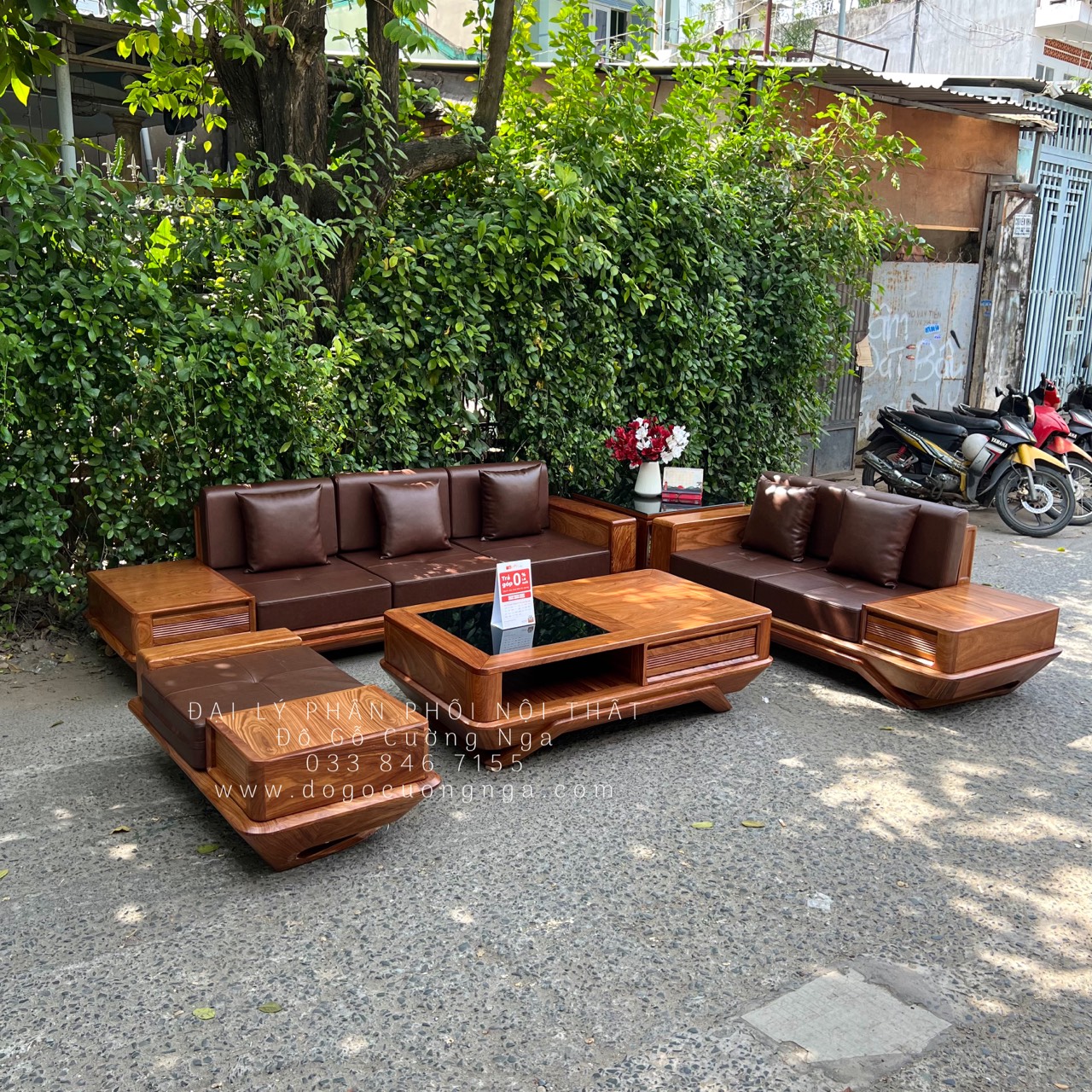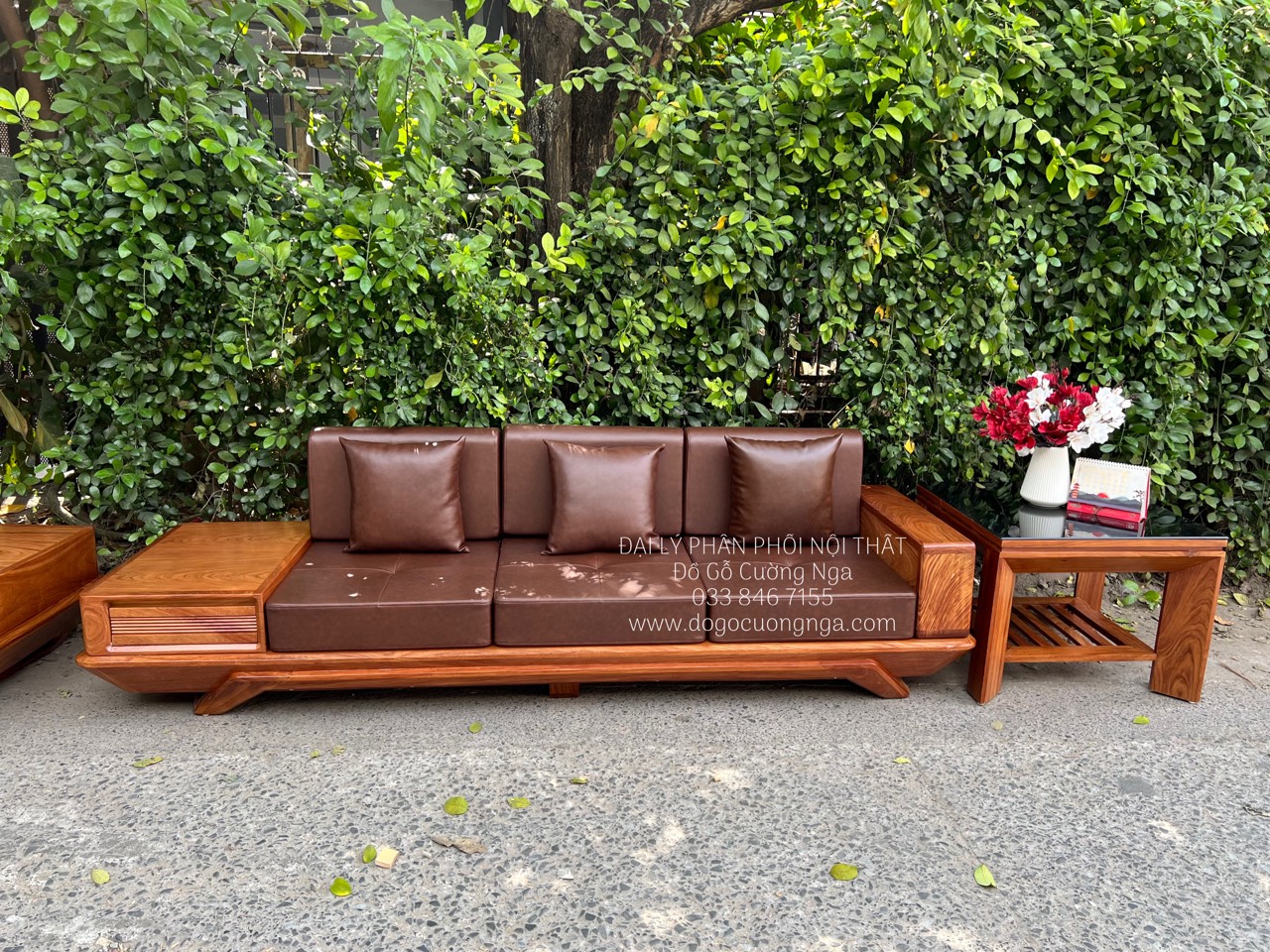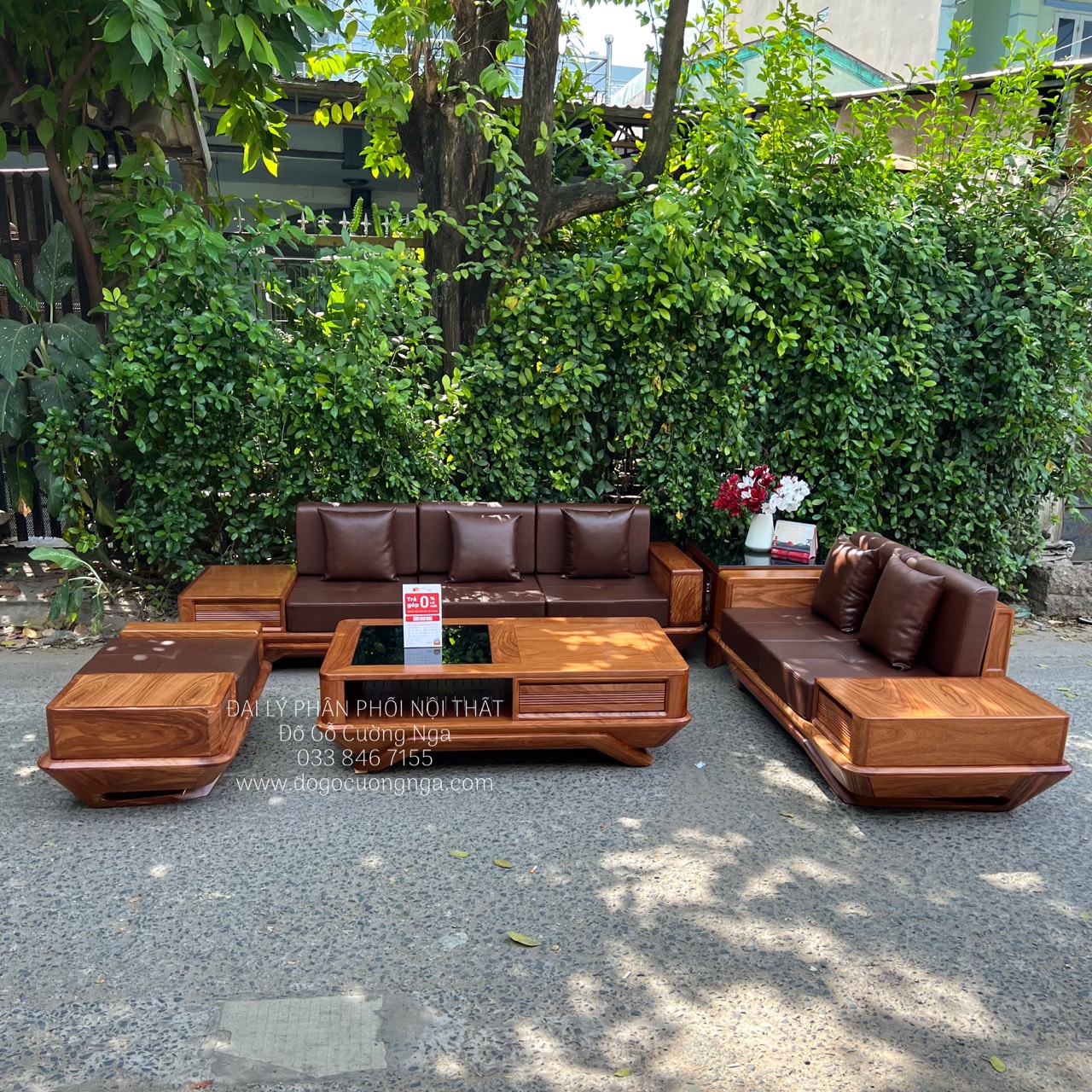 Phiên bản thiết kế hiện đại, đẳng cấp bằng chất liệu gỗ hương vàng nhập khẩu siêu bền, thừa hưởng những tinh hoa đẹp nhất , với những thanh khung gỗ chắc chắn và đệm da cao cấp rất bền bỉ, phù hợp cho không gian vừa và rộng, giúp tiết kiệm diện tích cho phòng khách hiện đại