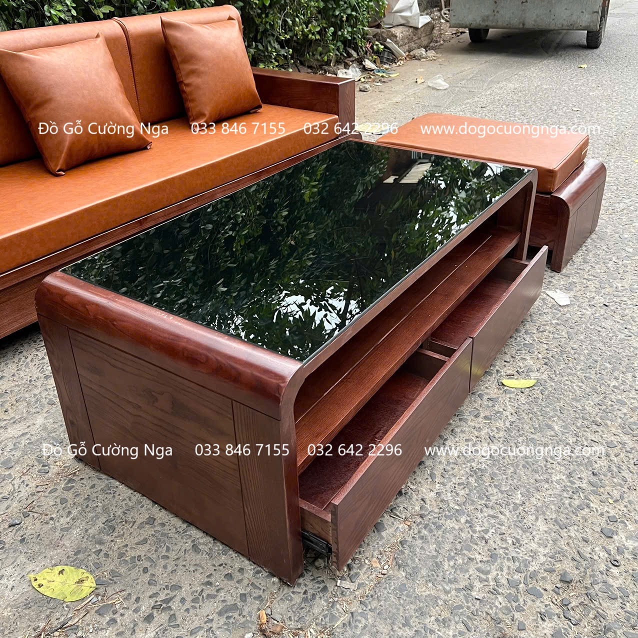 Bàn sofa gỗ sồi kèm mặt kính đen