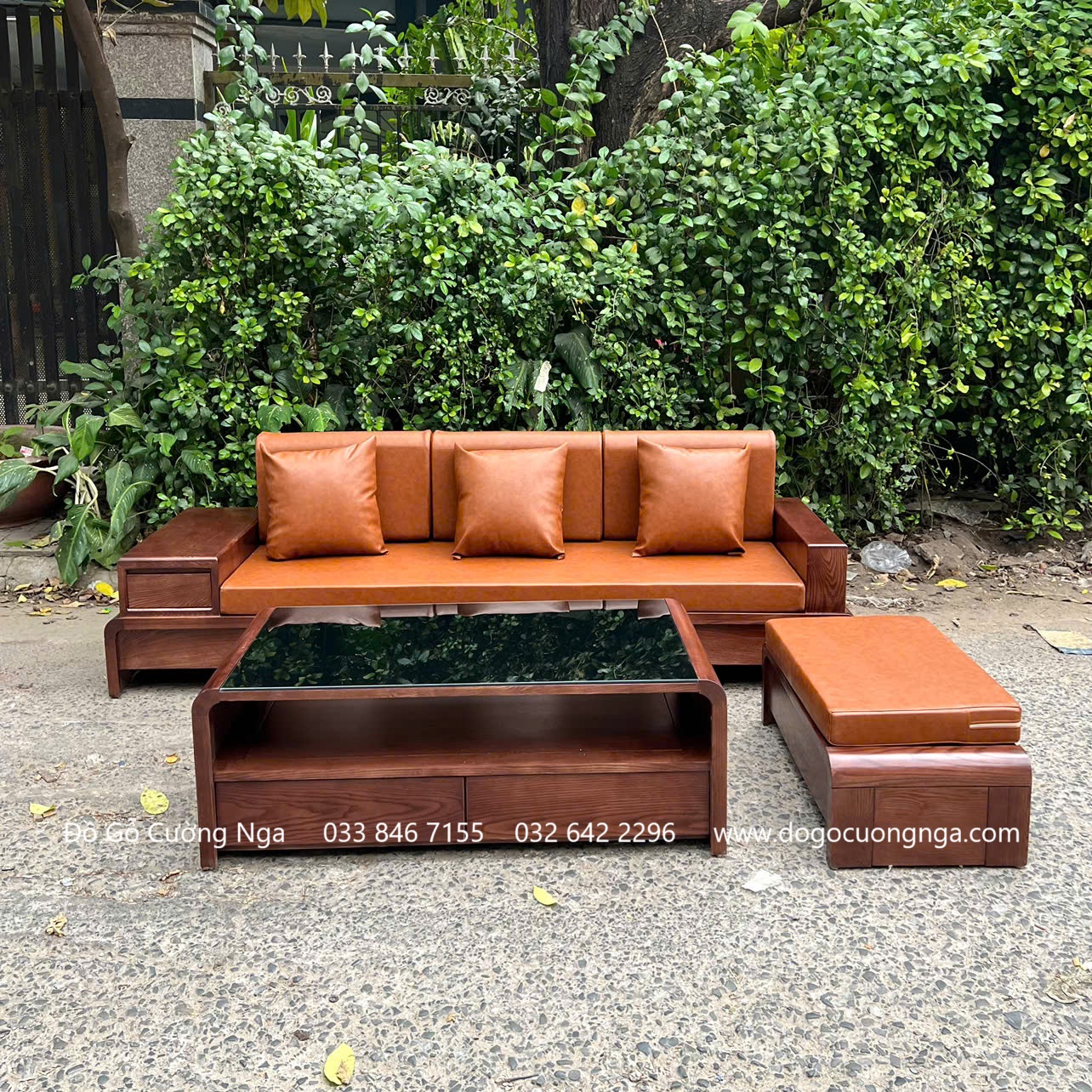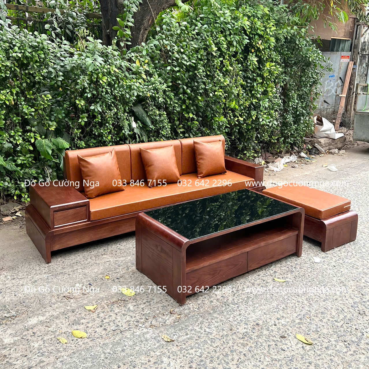 Bộ sofa văng gỗ sồi lau màu óc chó hiện đại
