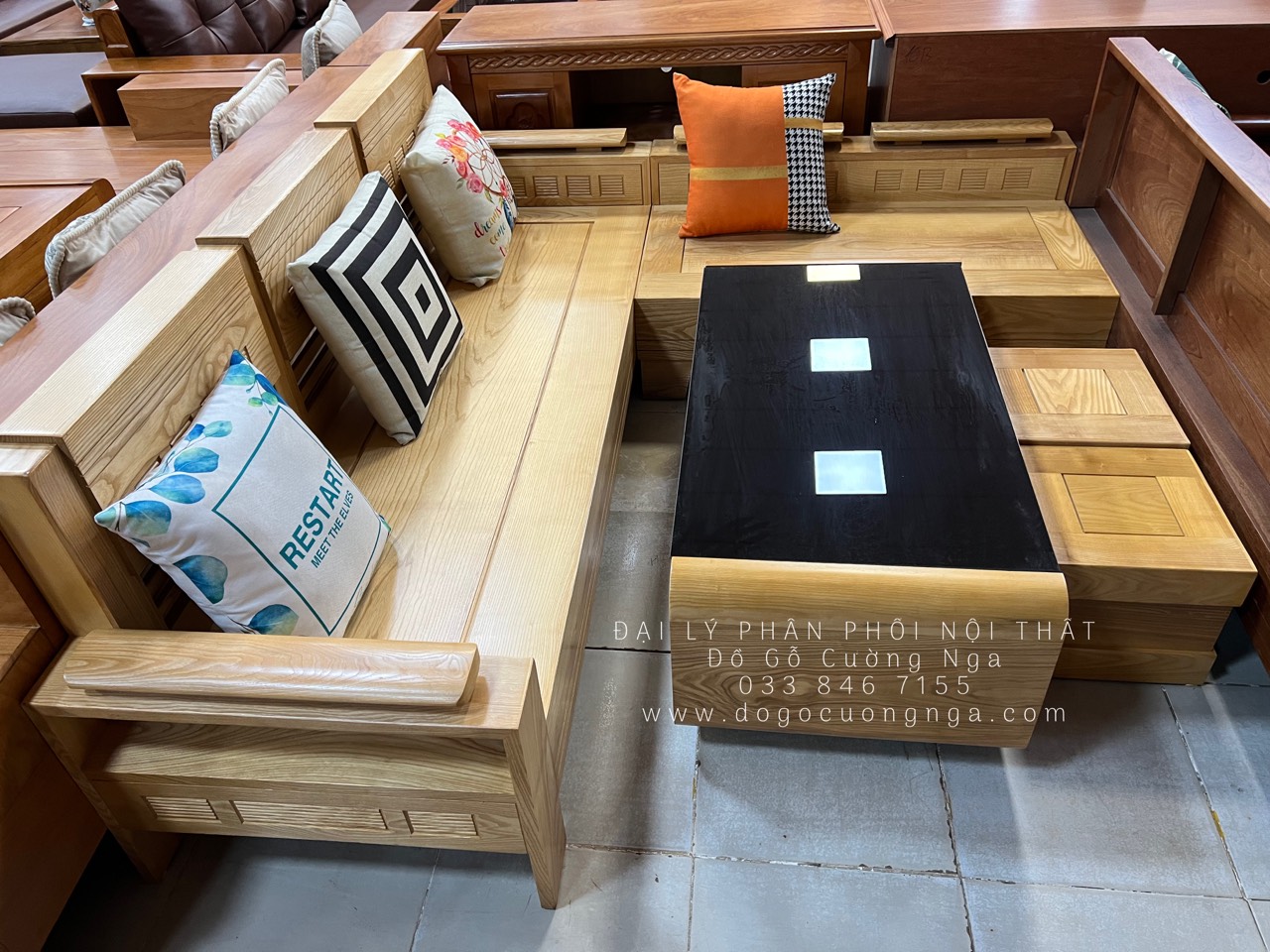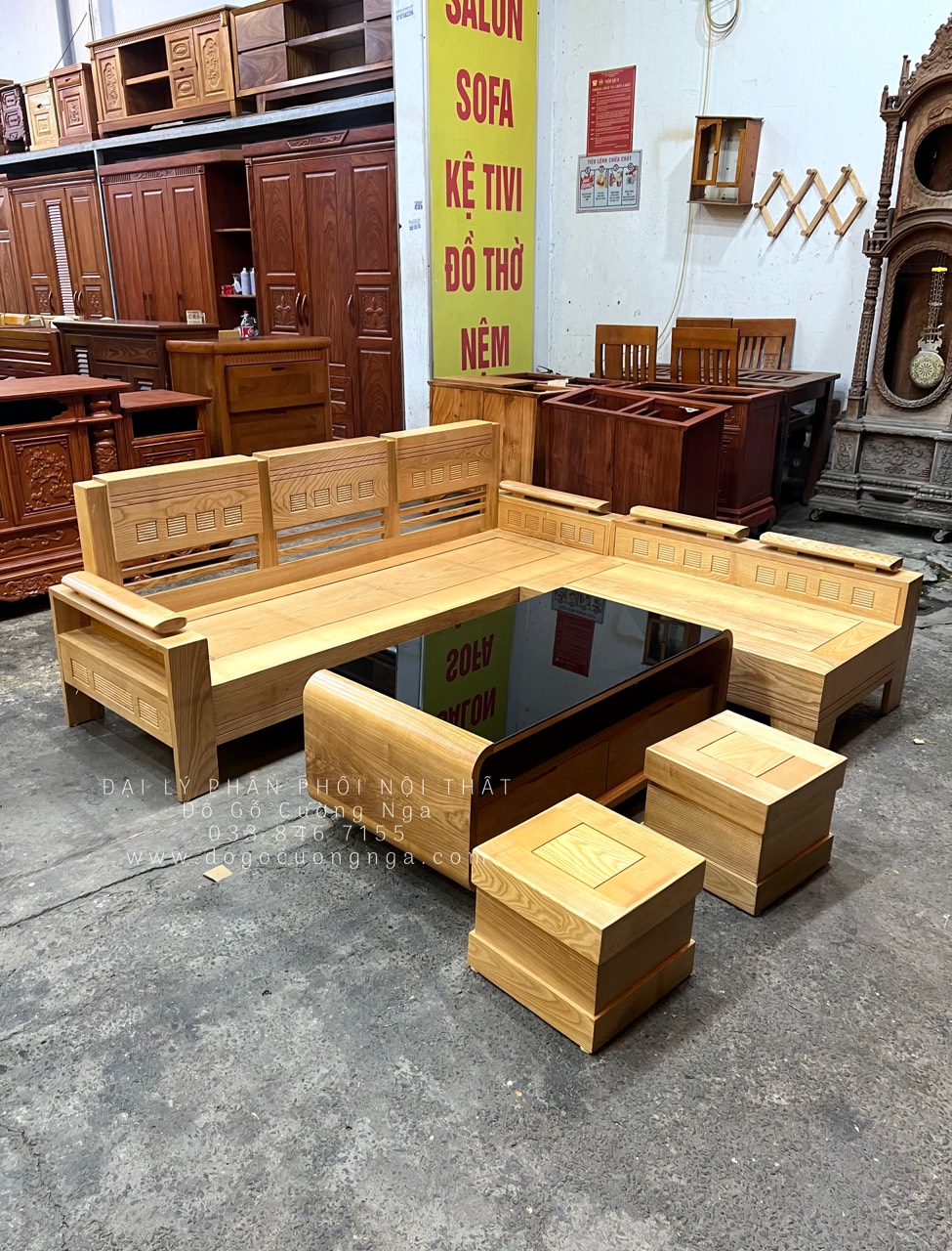 Video thực tế mẫu ghế sofa góc L gỗ sồi