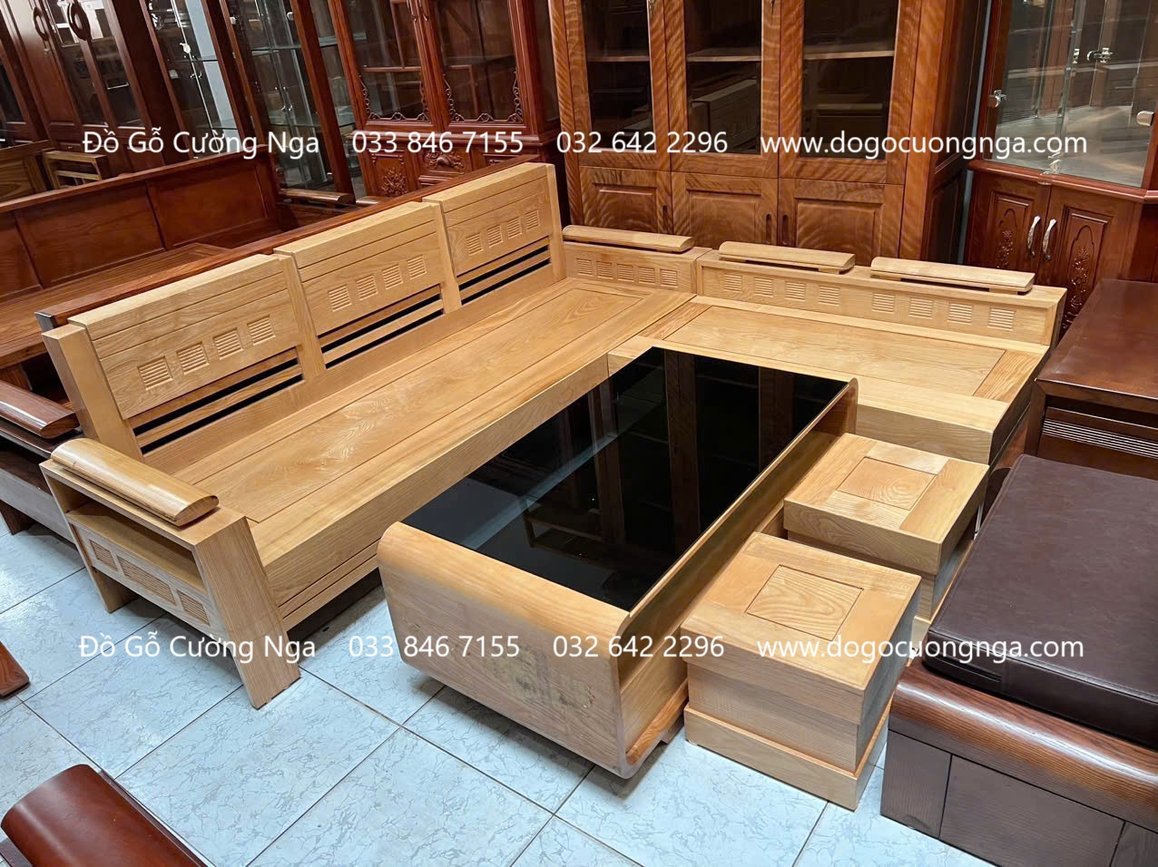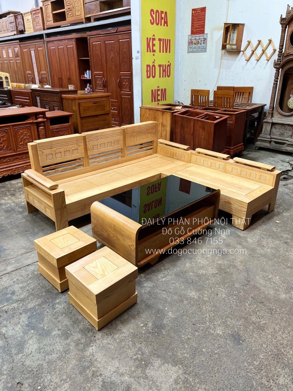 Ghế sofa gỗ sồi nga hiện đại góc L 2m x 1m8