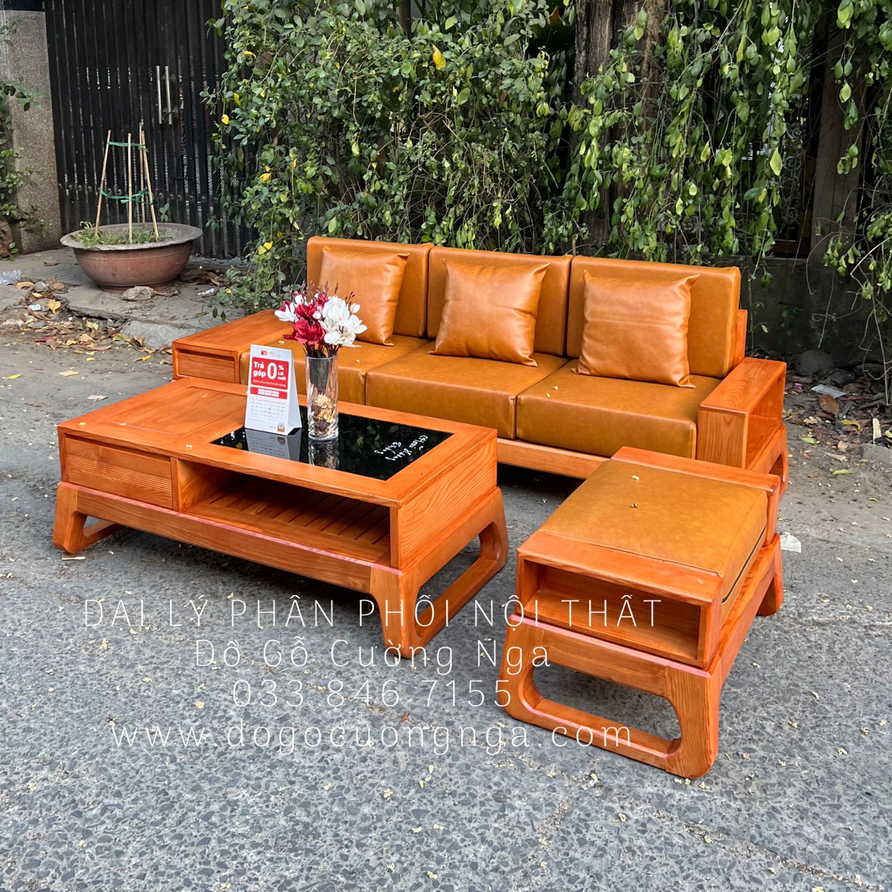 Ghế sofa gỗ sồi nga lau màu hiện đại