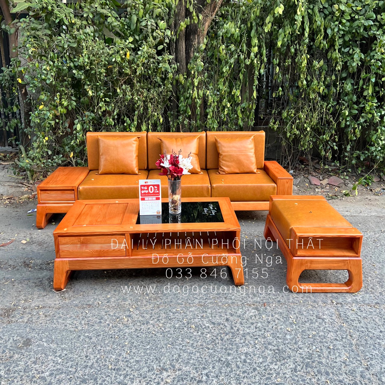 Ghế Sofa Gỗ Sồi Nga Văng Nhỏ Gọn Lau Màu Gõ Dành Cho Chung Cư